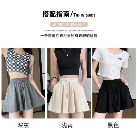 短裤高腰松紧女运动米妮百褶夏阔腿裤休闲显瘦防走光芭蕾风热裤子