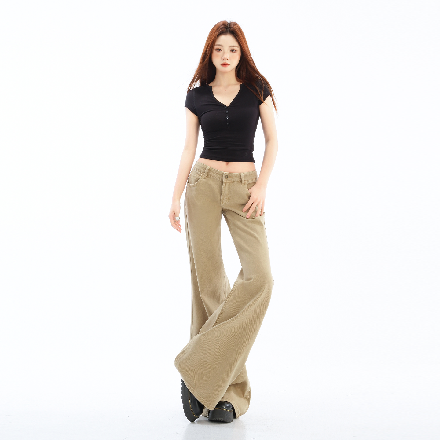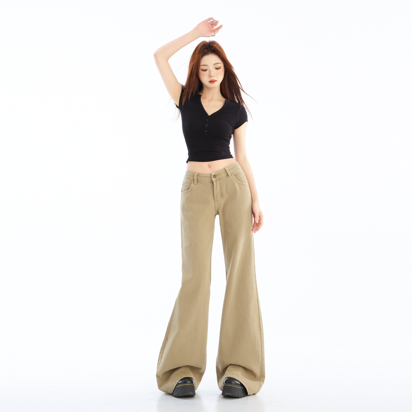 首页> 女装> BRN加绒卡其低腰微喇不贴腿牛仔裤女时尚辣妹修身显瘦阔腿拖地裤