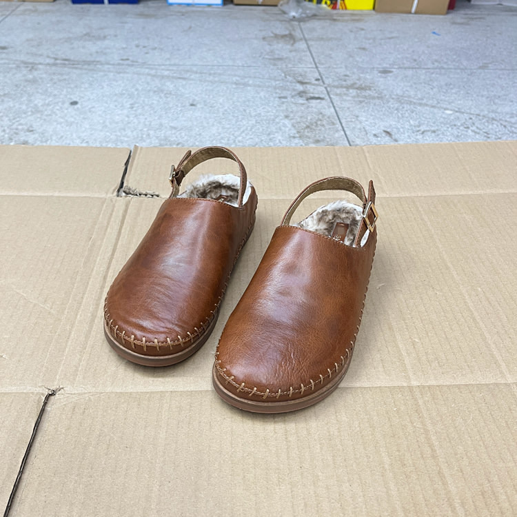 外贸原单真皮秋冬博肯单鞋内里加绒简约时尚新款圆头后带舒适休闲