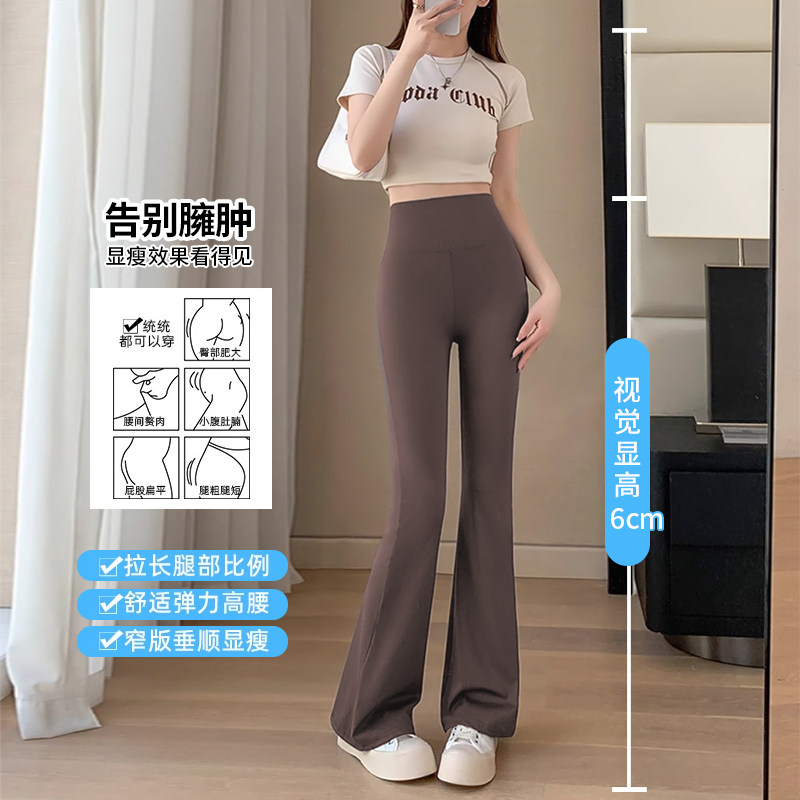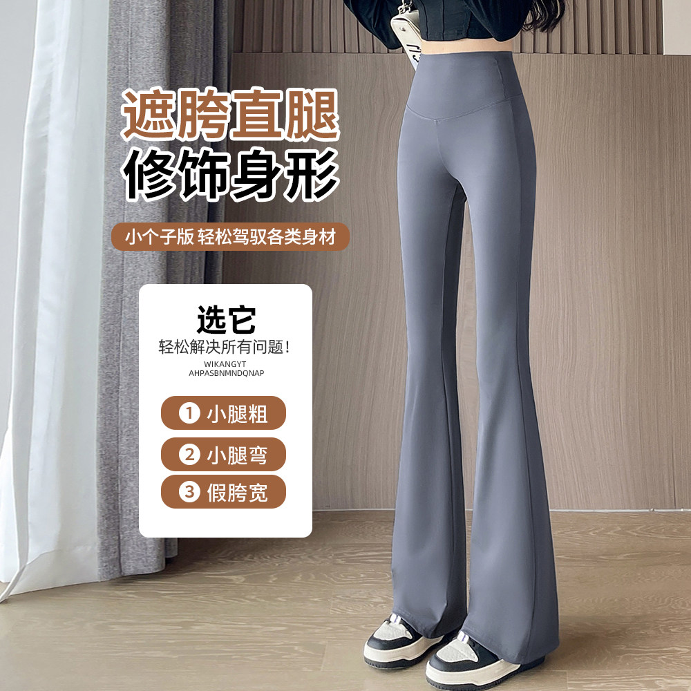 冰丝微喇瑜伽裤女外穿薄款小个子打底裤高腰收腹提臀喇叭鲨鱼裤子