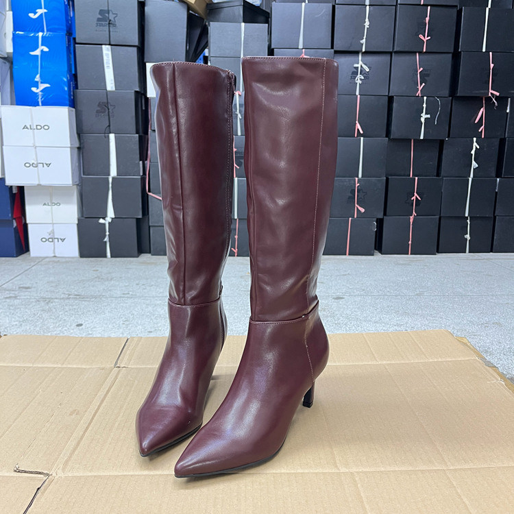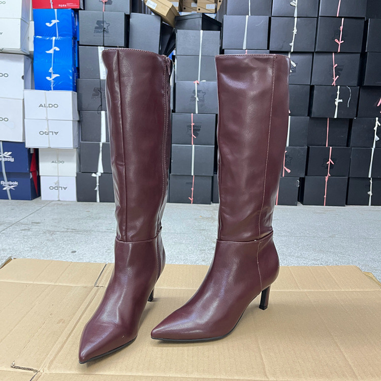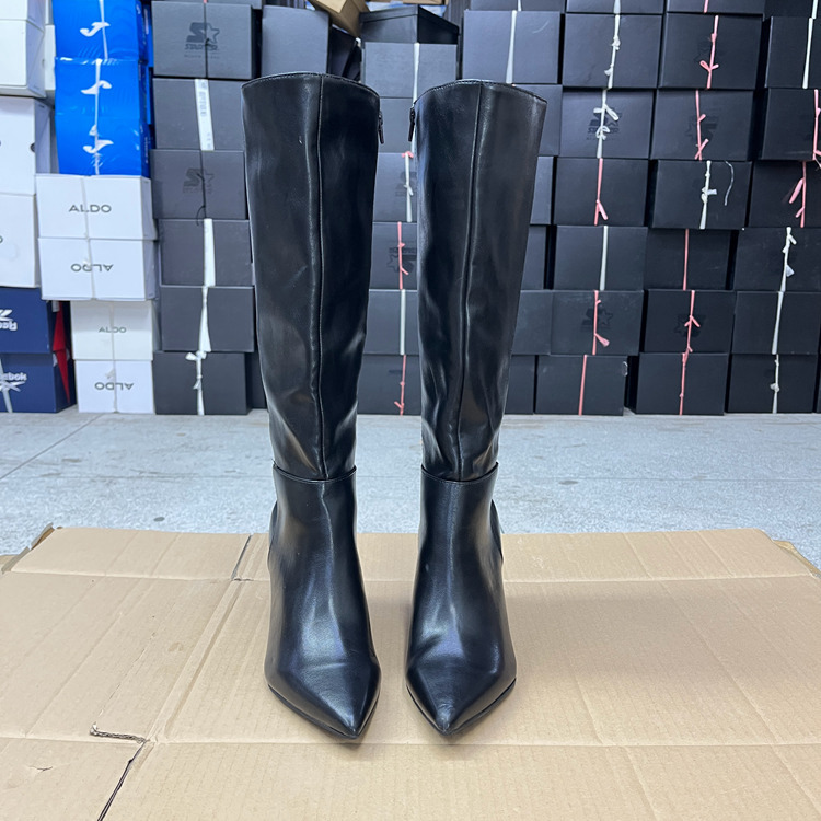 外贸原单女靴微瑕特惠新款时尚尖头纯色细高跟侧拉链时装长筒靴