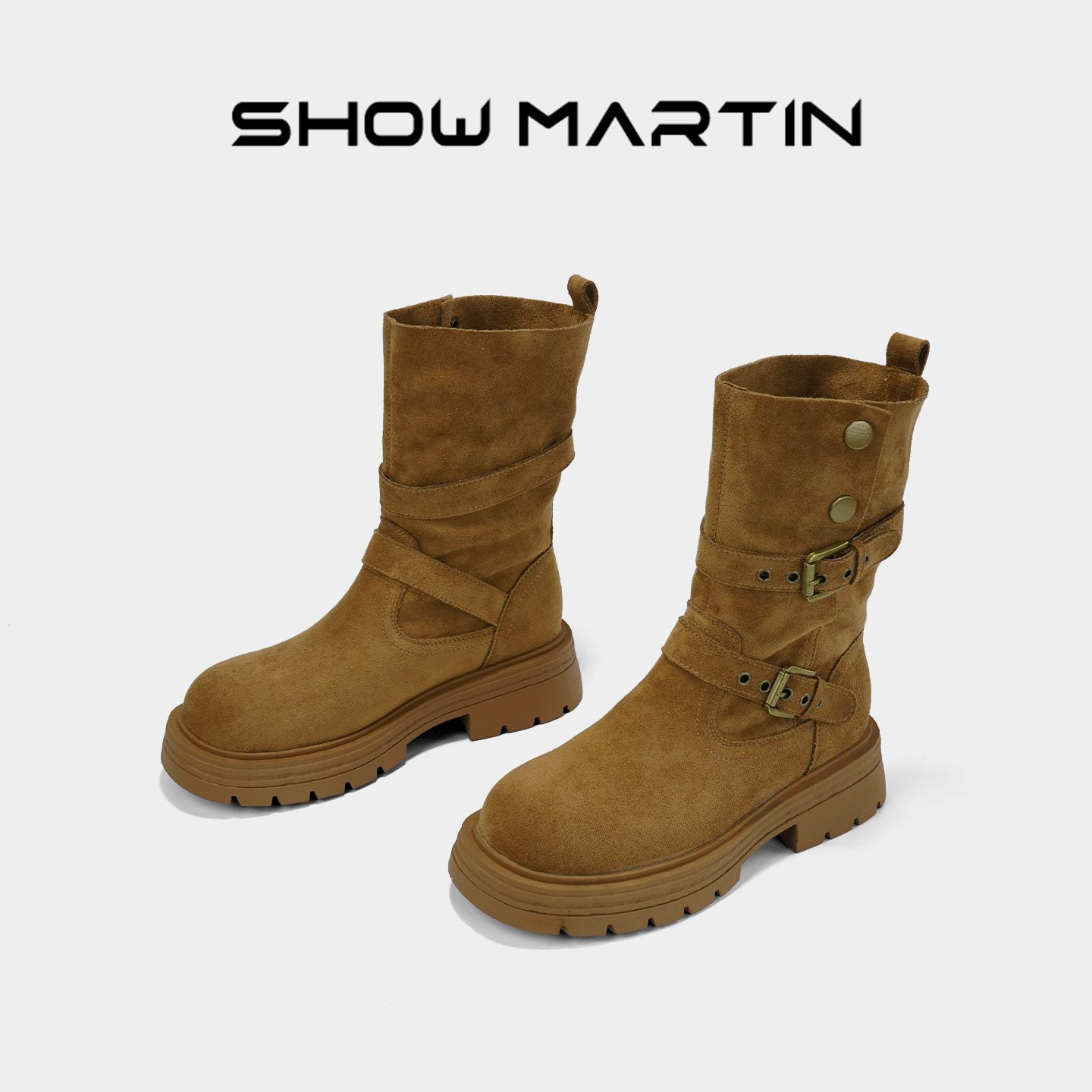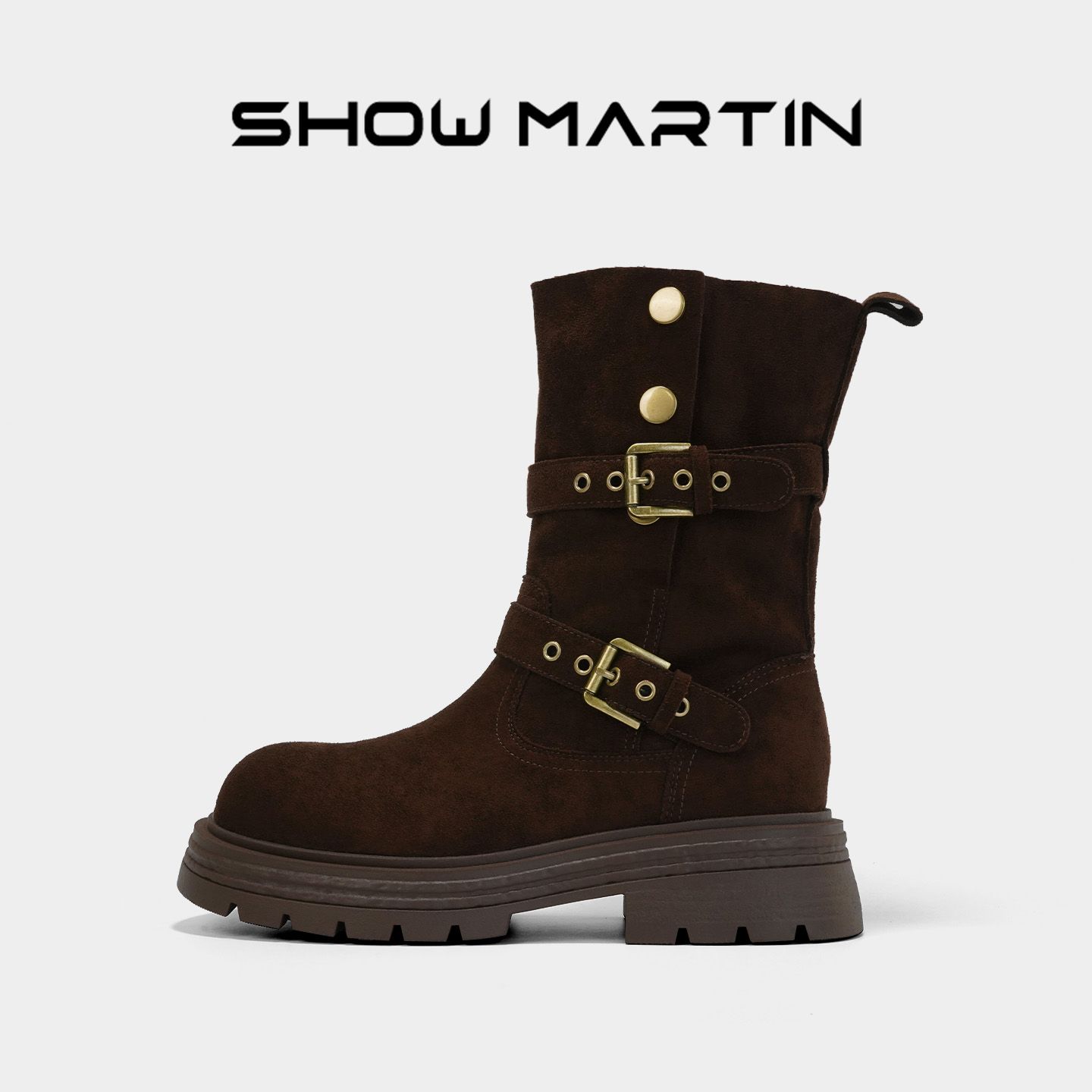 【鱼九九推荐】复古厚底英伦风马丁靴短靴女美拉德棕色系