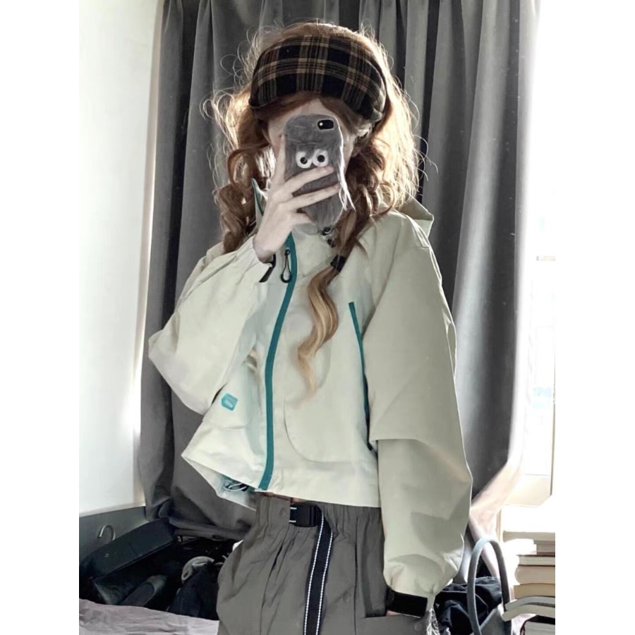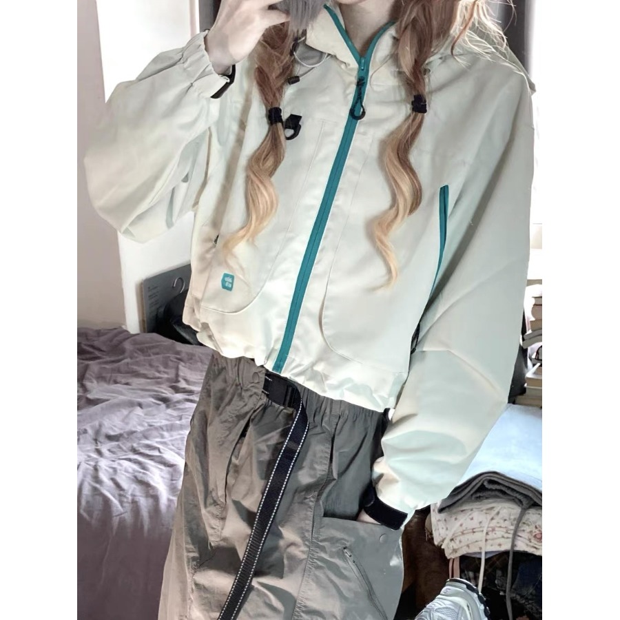 超好看冲锋衣女款2025新款春秋小个子短款防风高级感连帽夹克外套