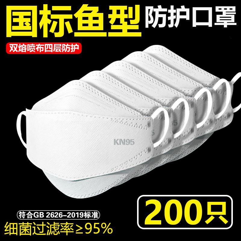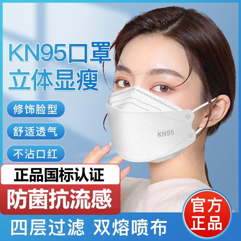 鱼嘴型kn95口罩国标一次性四层加厚双熔喷成人款柳叶型高颜值口罩
