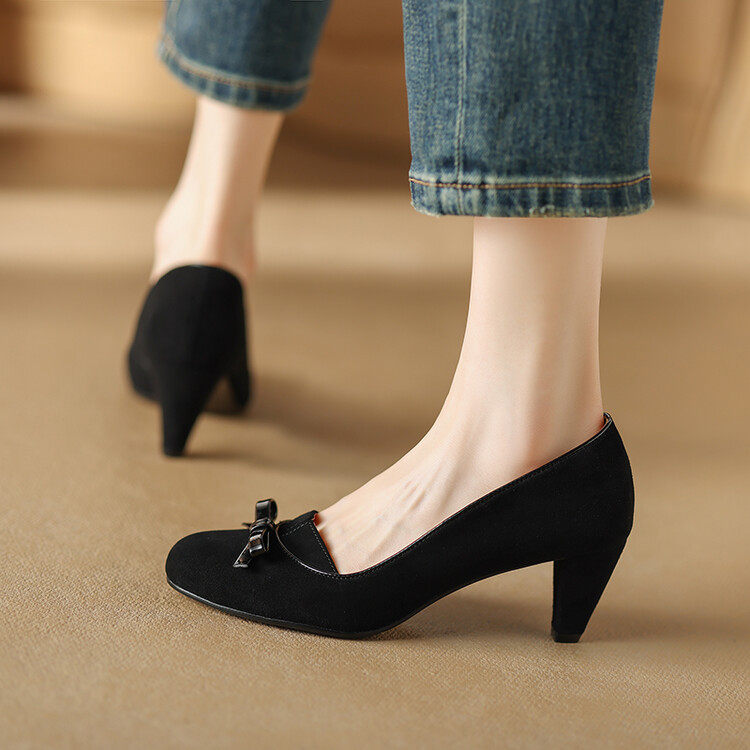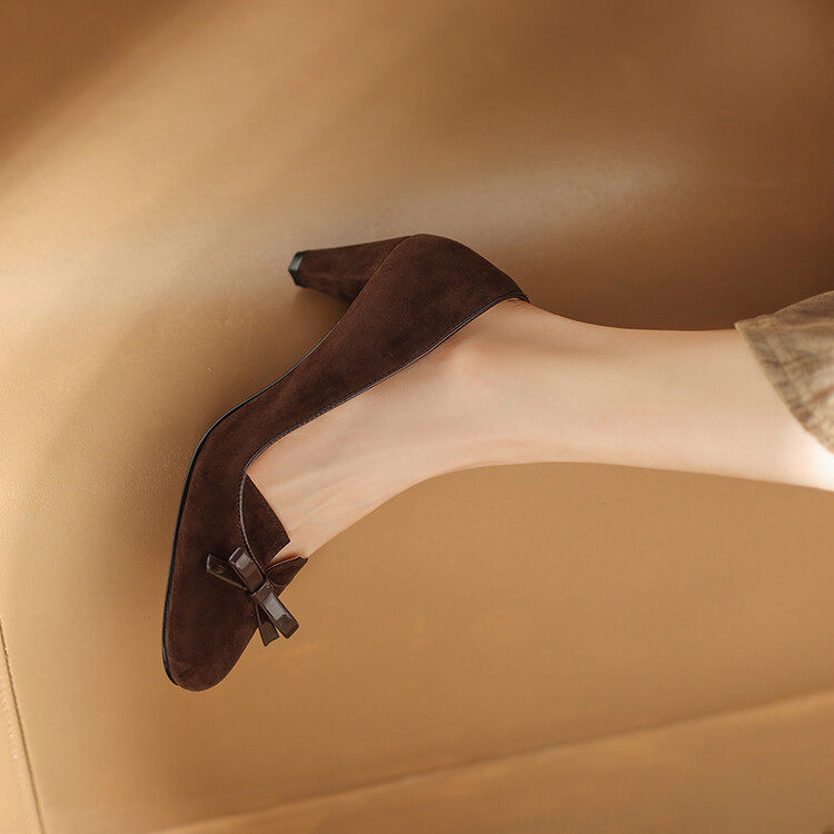 6cm/8cm两种跟高~复古优雅浅口单鞋春秋新款高跟鞋羊翻皮女鞋