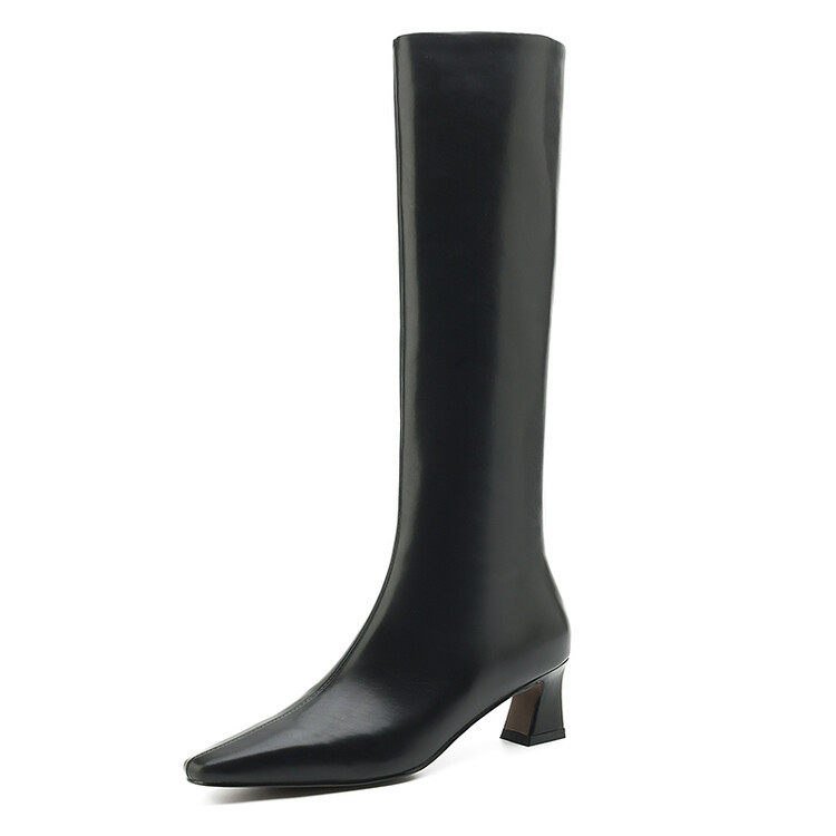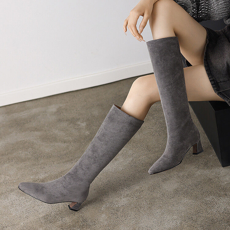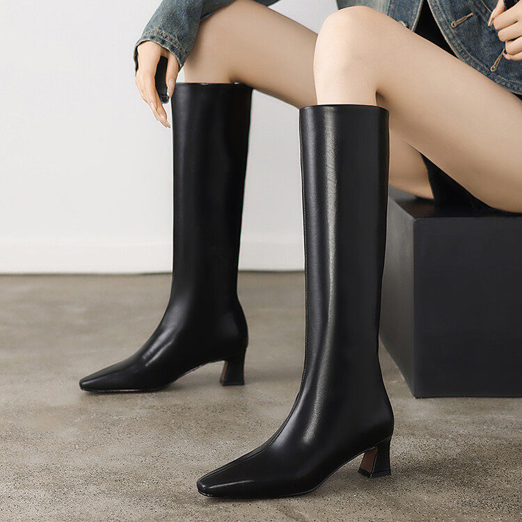 百搭粗跟不过膝长靴女2024秋冬新品欧美风小方头套筒中跟时装靴子