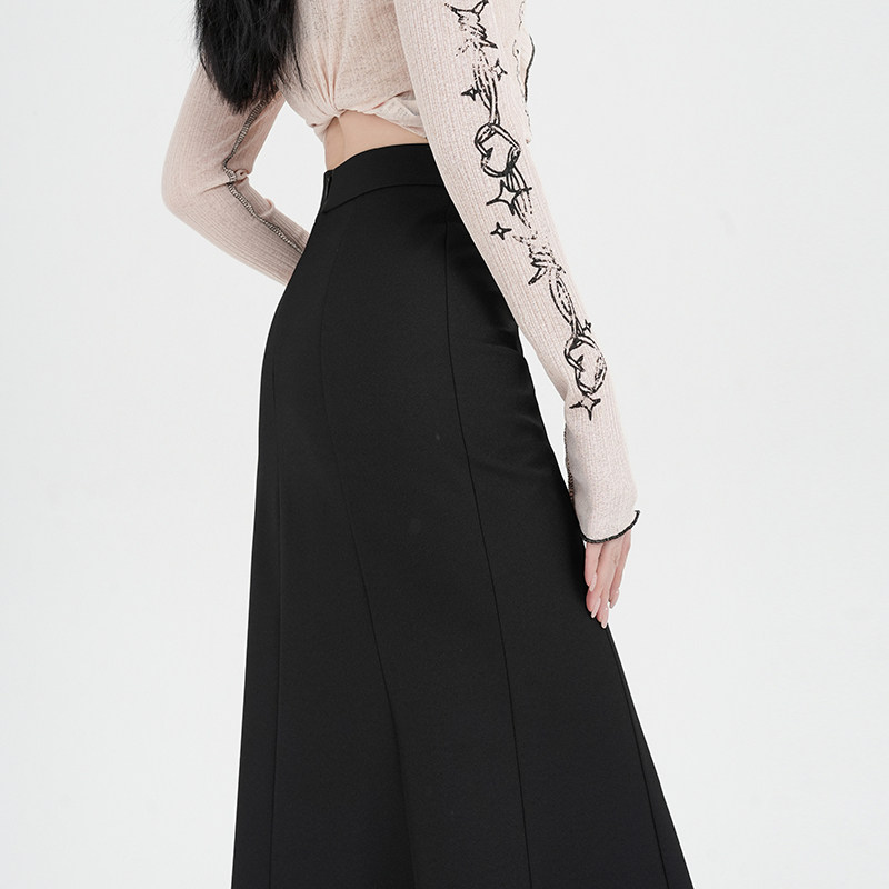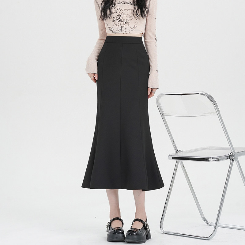 黑色西装料包臀半身裙女春夏2026新款时尚a字鱼尾裙小个子长裙子