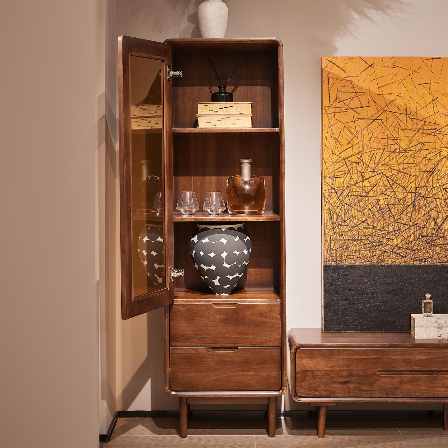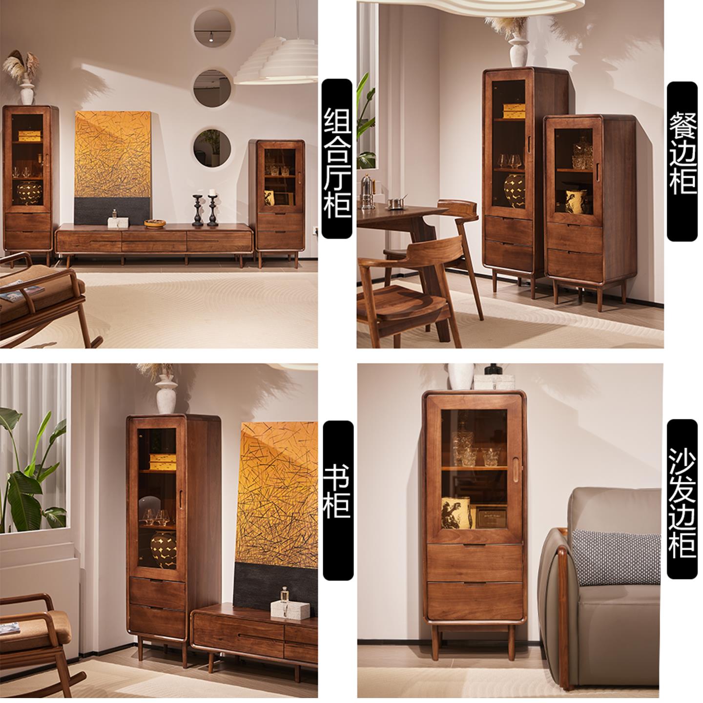 黑胡桃木全实木边柜小户型客厅家用展示书柜收纳柜餐柜玻璃酒柜