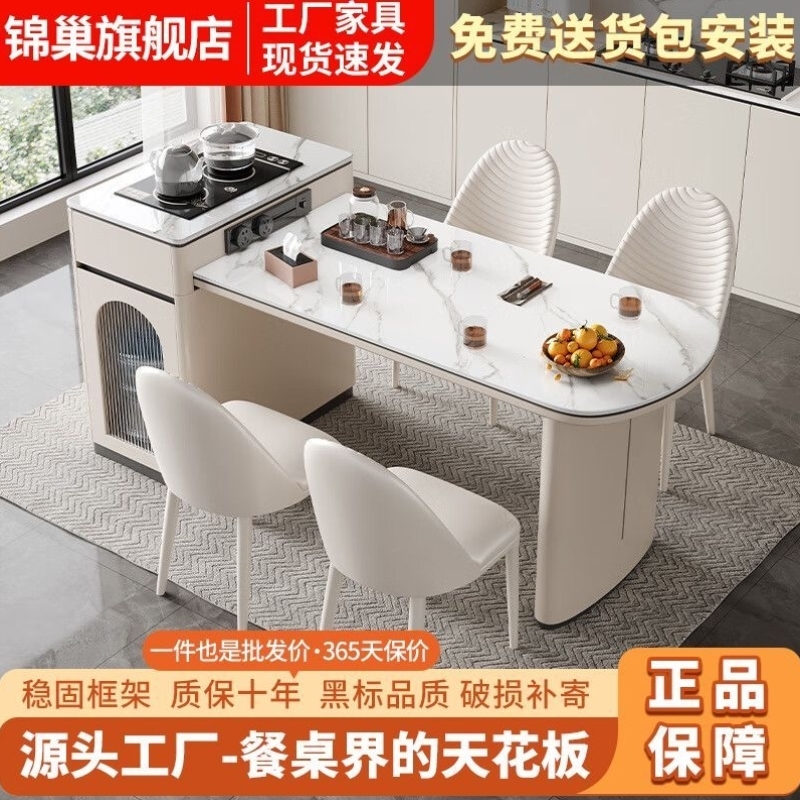 岩板岛台餐桌茶台一体小户型可伸缩导台家用现代简约多功能茶桌子
