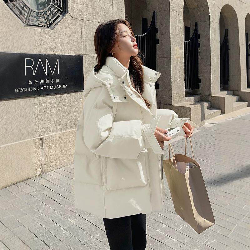 2025新款宽松棉衣学院风羽绒棉服女短款小个子连帽面包工装棉袄