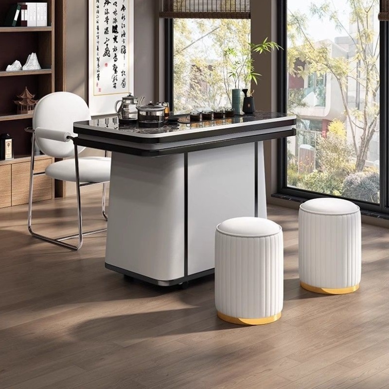 阳台茶桌椅组合移动岩板茶台小型边几边柜侧柜泡茶简约家用小茶车