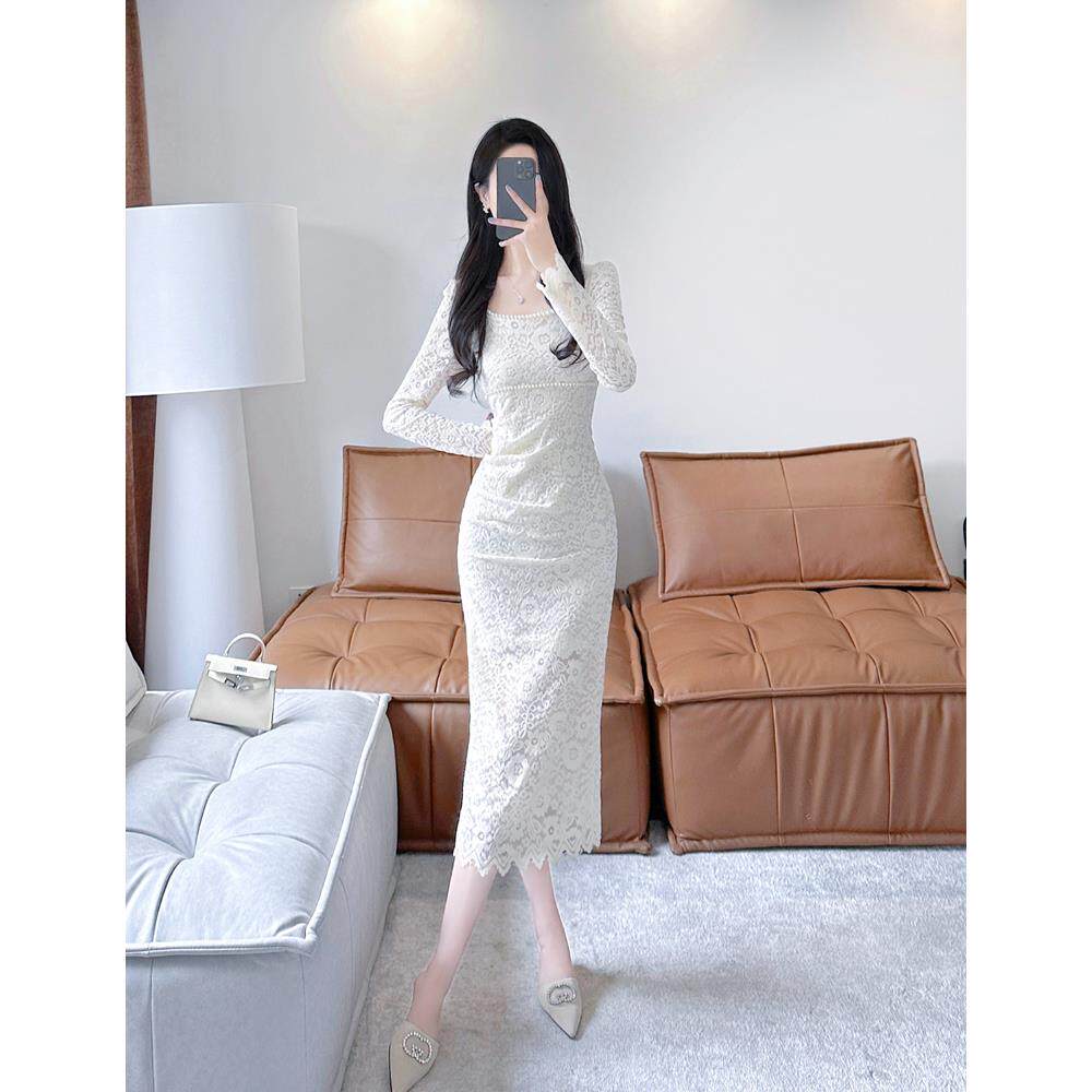蕾丝连衣裙女装2024新款春秋高级感气质名媛修身显瘦中长款包臀裙