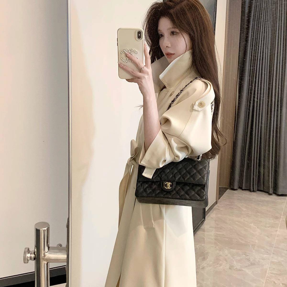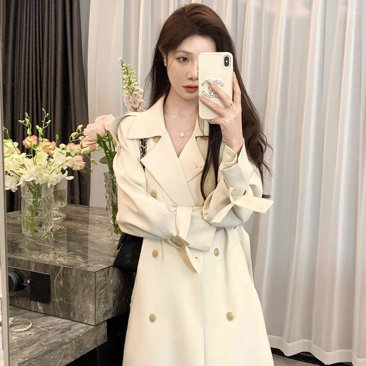 米白色风衣外套女2025春秋季新款中长款韩版气质小个子高级感大衣