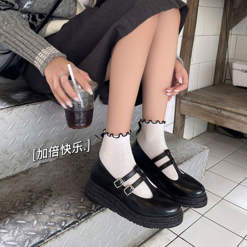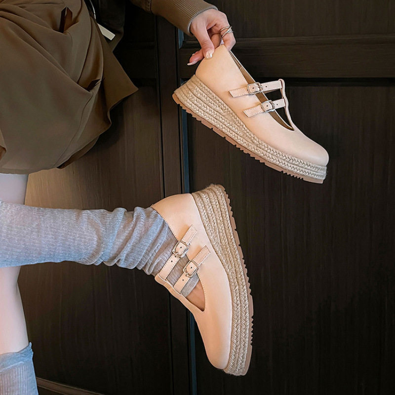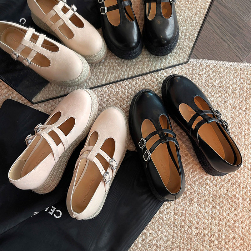 5cm编底舒适休闲女鞋2025秋款松糕厚底单鞋T型皮带扣玛丽珍鞋