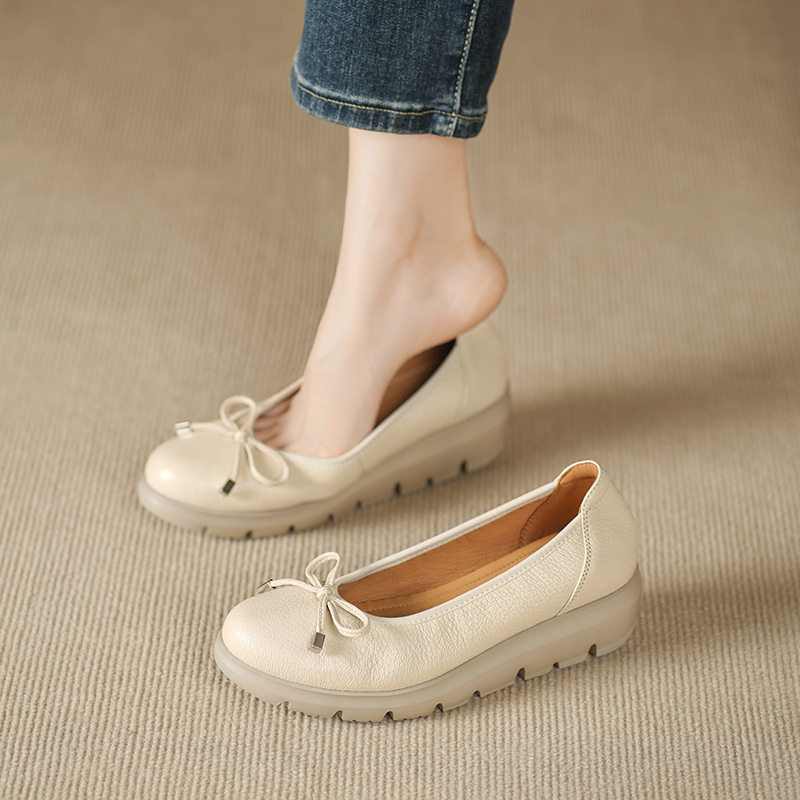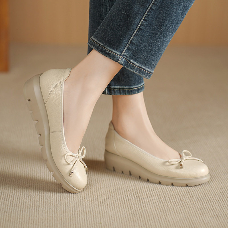 法式软羊皮小皮鞋女简约新款真皮浅口单鞋通勤软底奶奶妈妈工作鞋