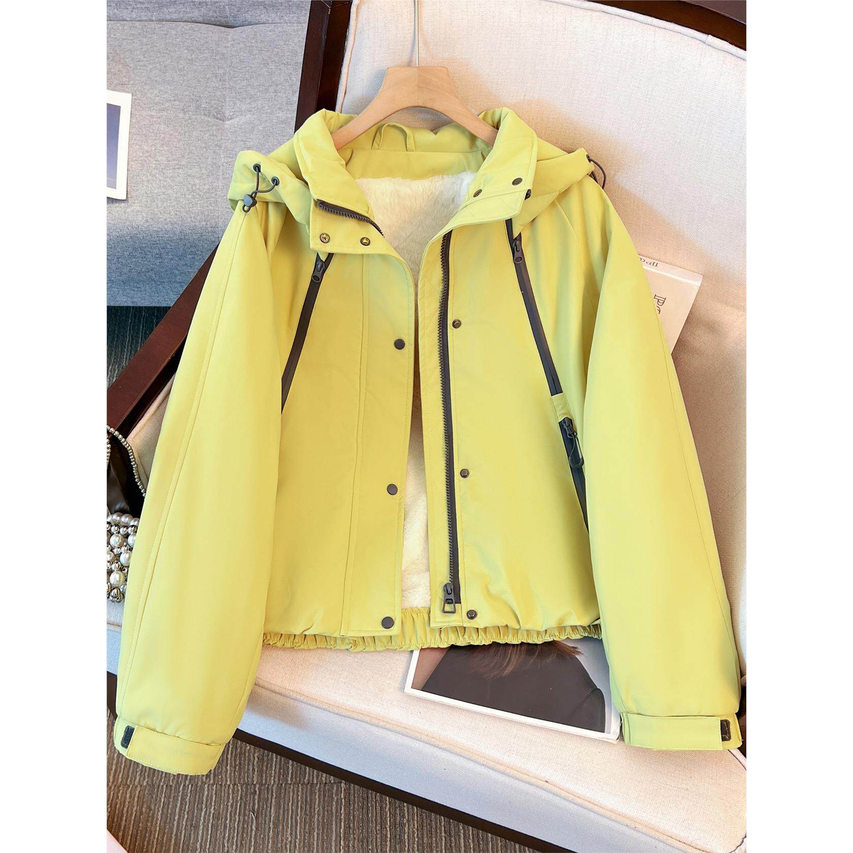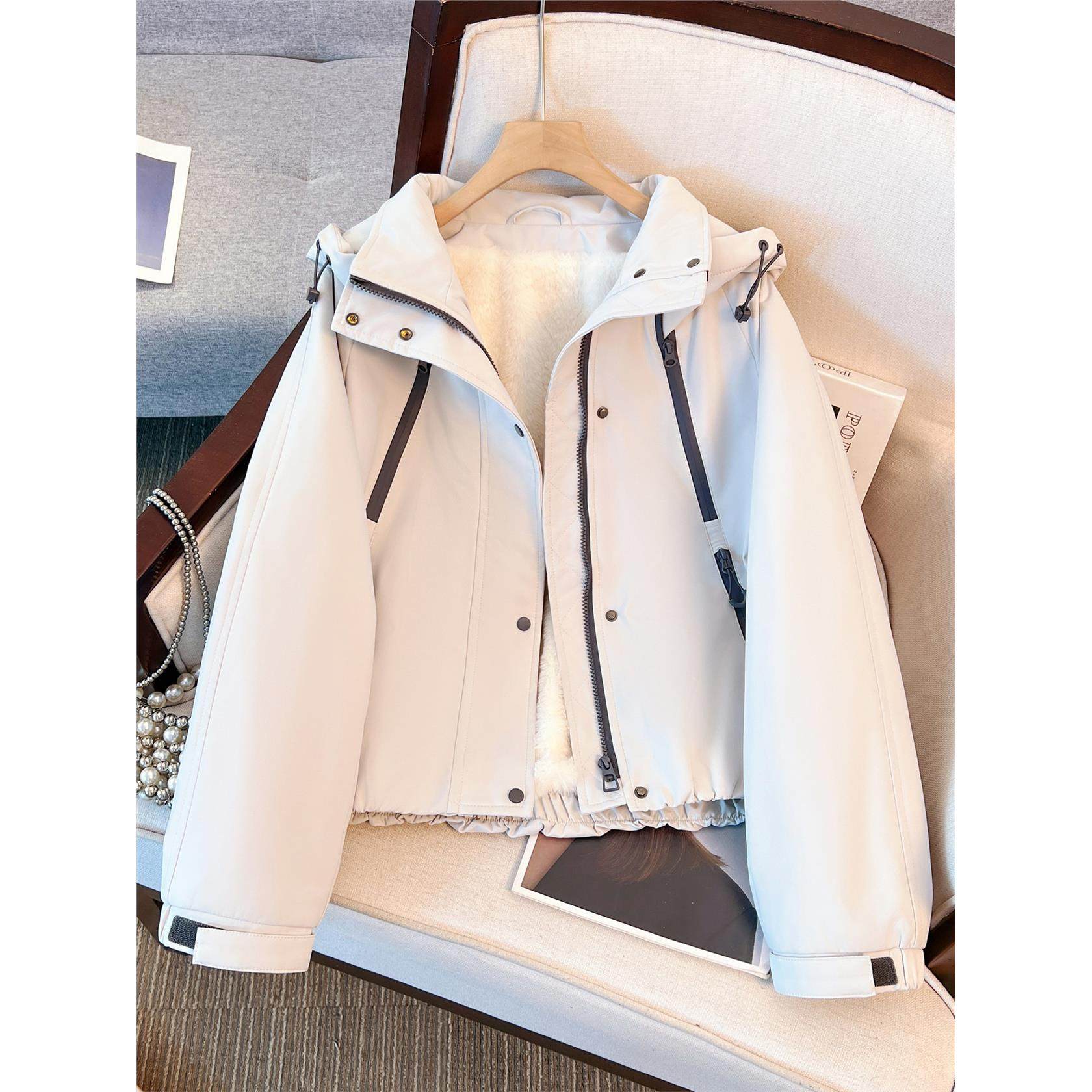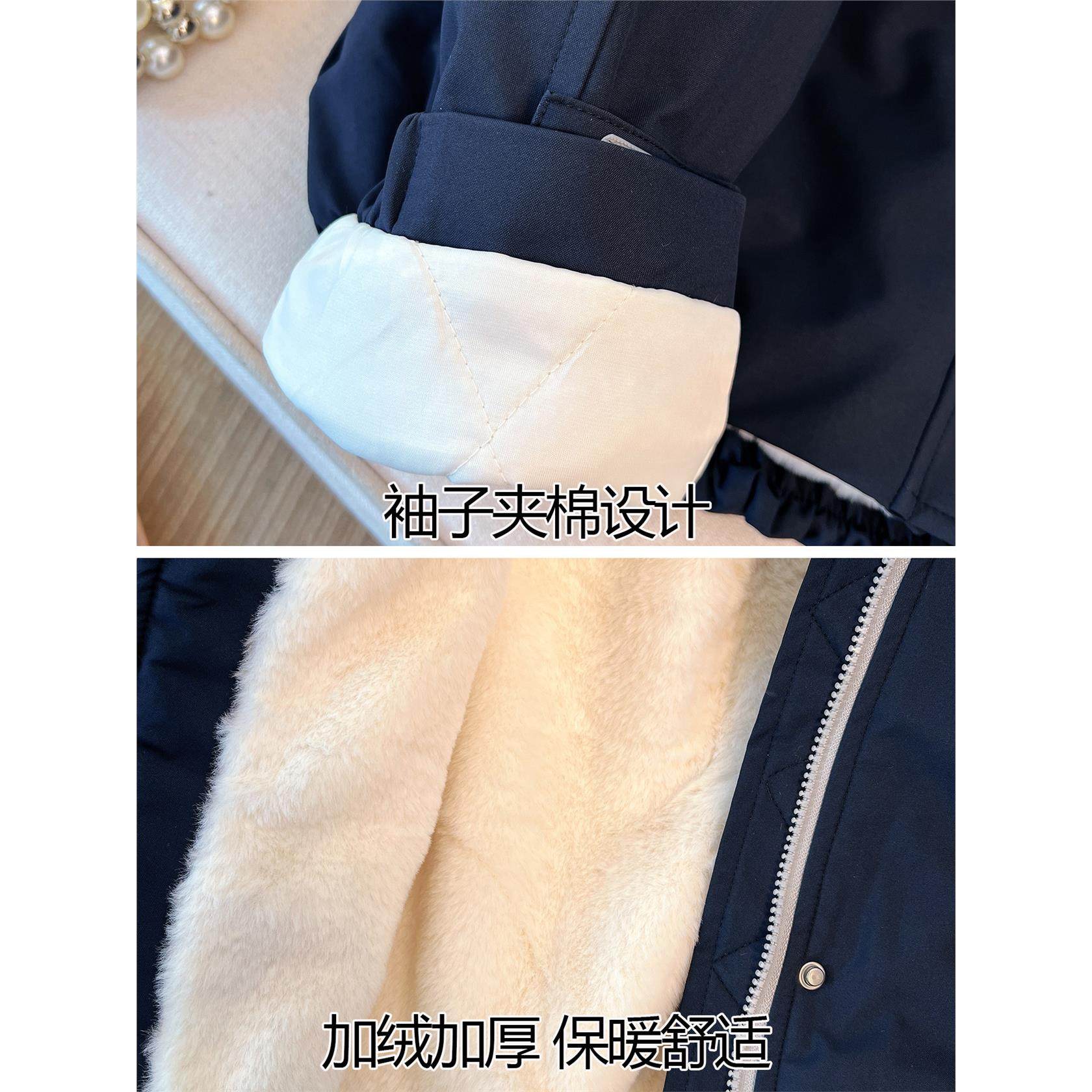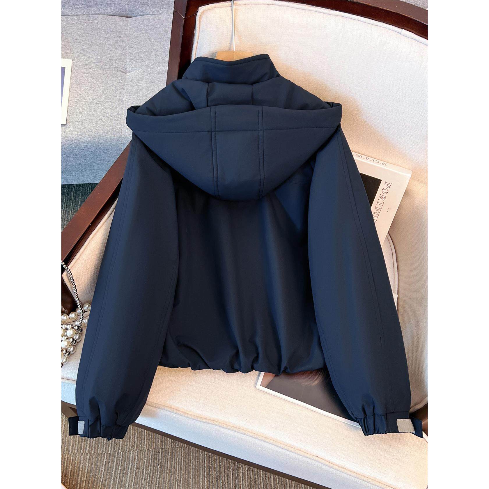 韩系藏青蓝色连帽加绒加厚冲锋外套女2025初冬新款上衣棒球服夹克
