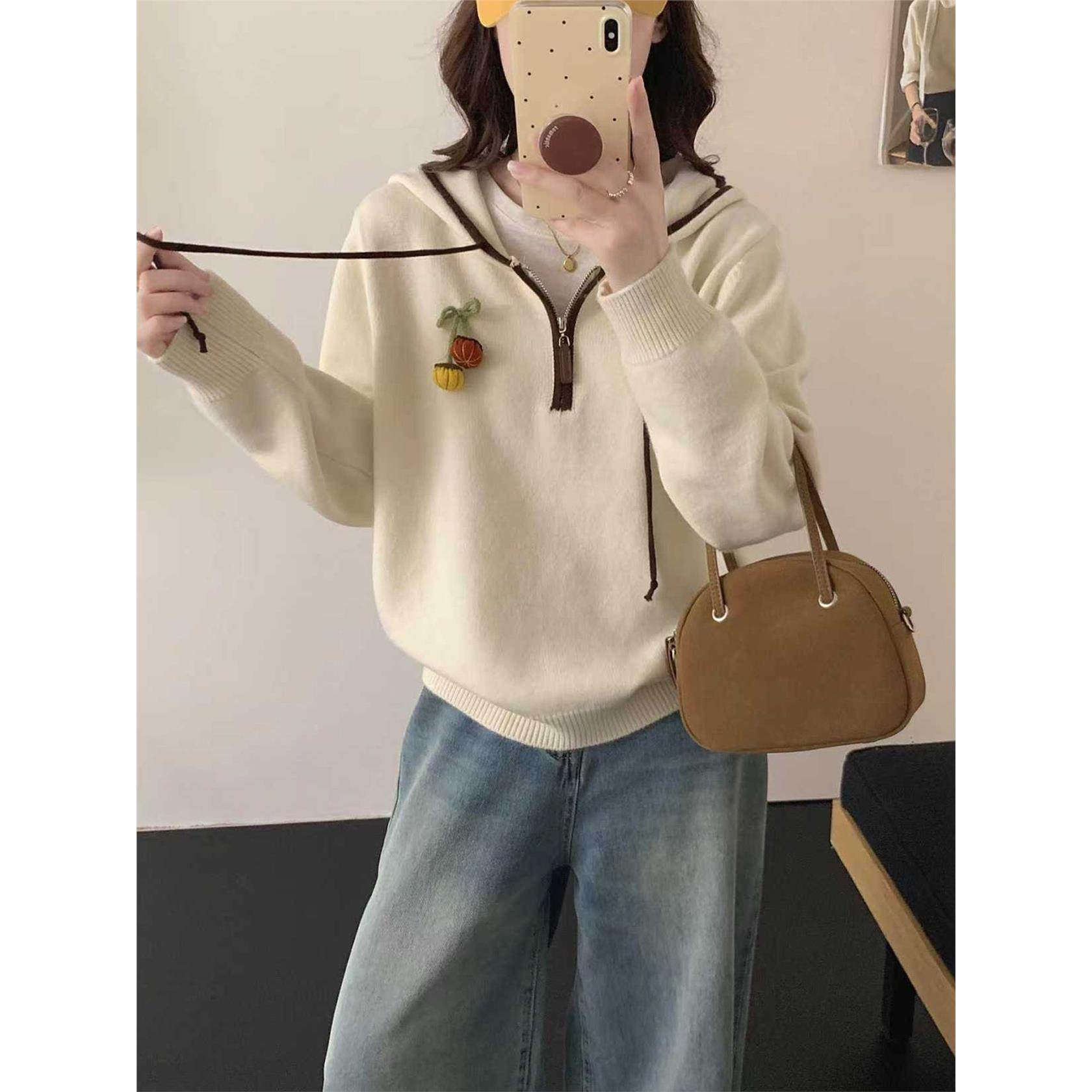冬季半拉炼连帽红色毛衣女2025新款爆款内搭可外穿针织打底衫秋冬