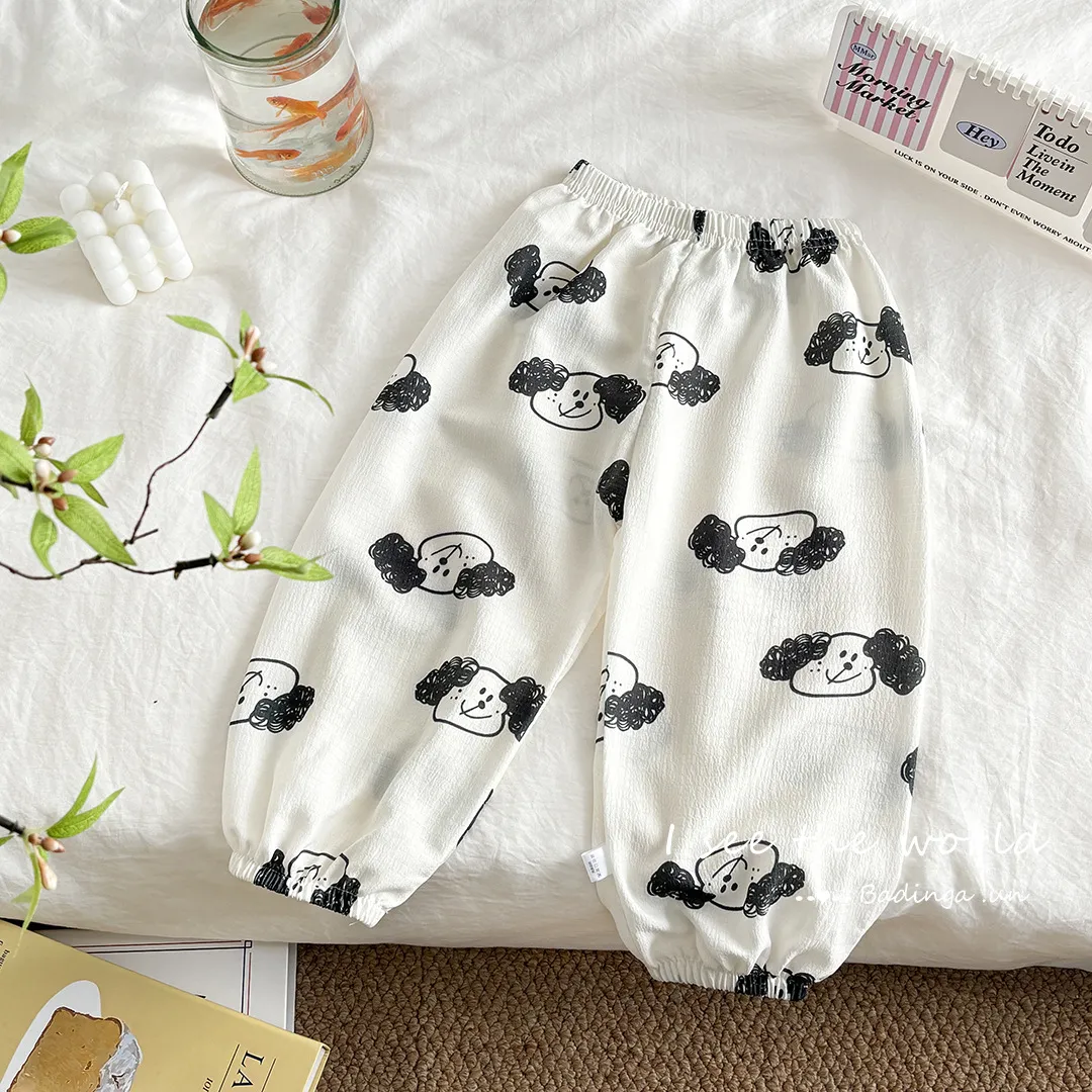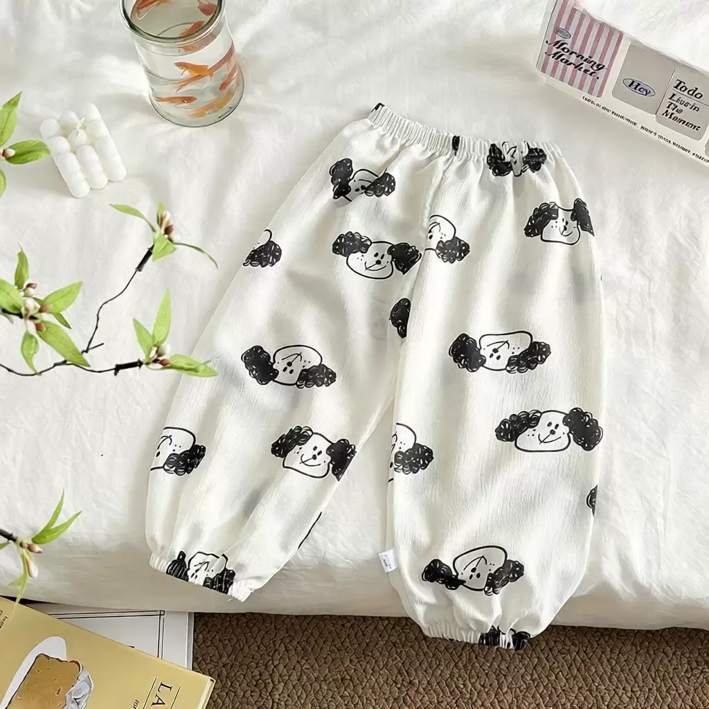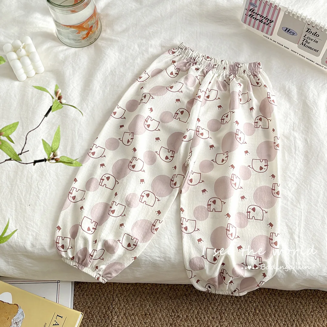 儿童夏季防蚊裤男童印花泡泡棉直筒束脚裤女宝宝可爱宽松防蚊长裤