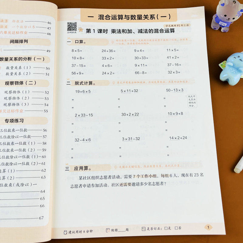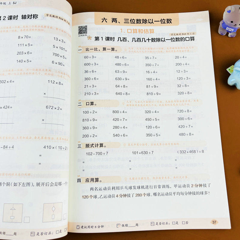 苏教版2025新版三年级上册数学计算题强化训练应用题口算笔算竖式脱式计算天天练3年级上学期SJ版课本同步练习册口算笔算乘法除法