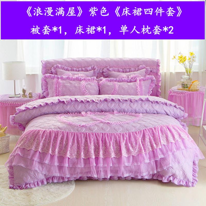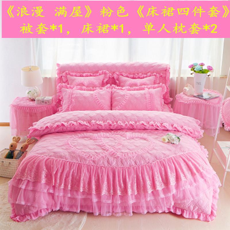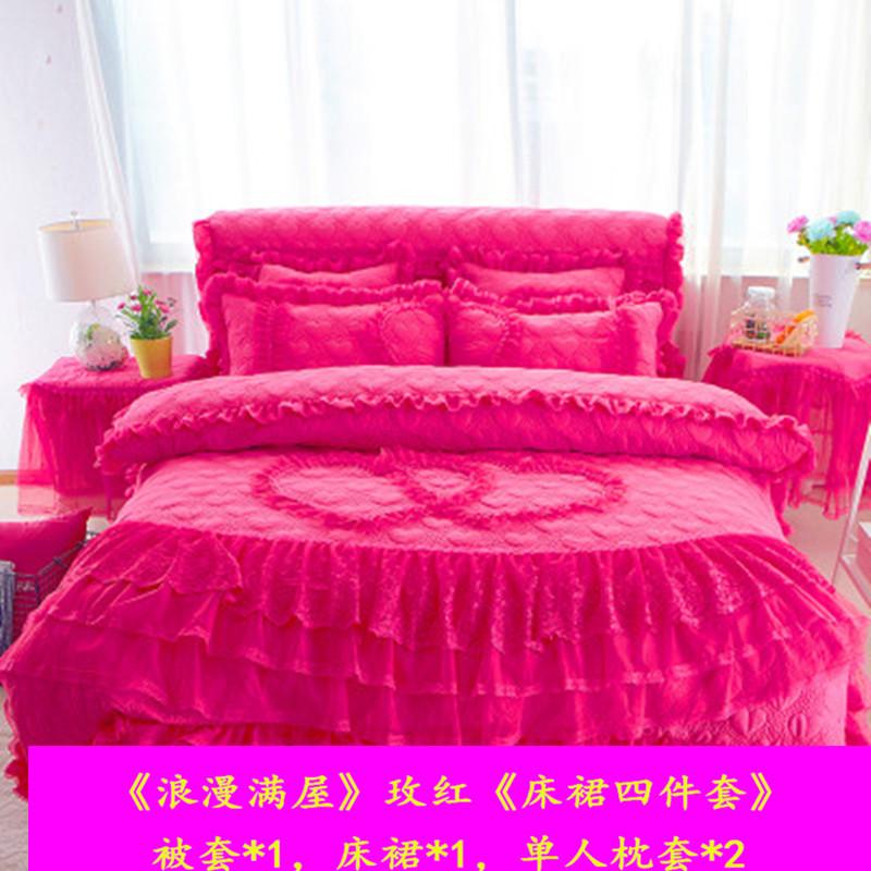 71tx婚庆大红色夹结婚被子床裙四件套棉床罩款床上蕾丝花边床单被