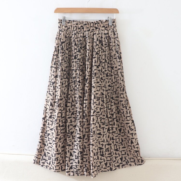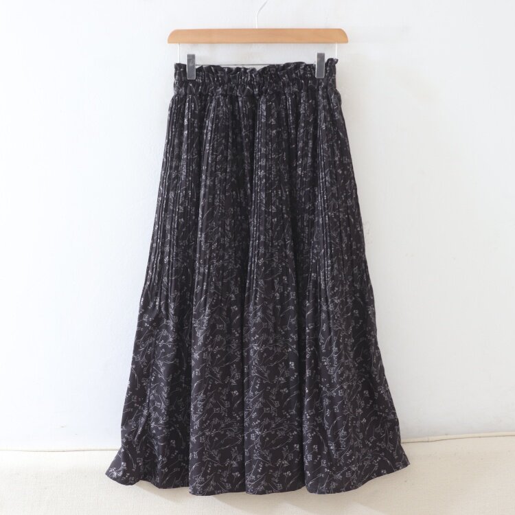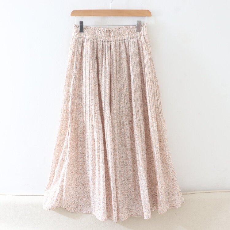 P05061日单新款客供细百褶花边松紧高腰显瘦女印花气质长款半身裙