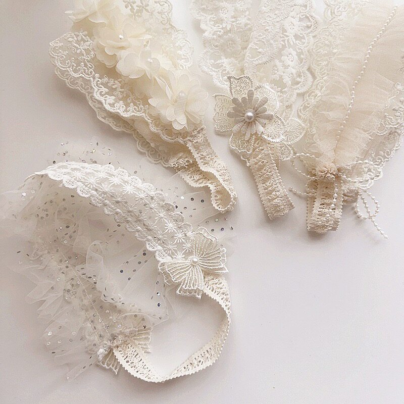 宝宝复古公主洛丽塔风蕾丝生日发带婴幼儿发超头弹力发箍花童头饰