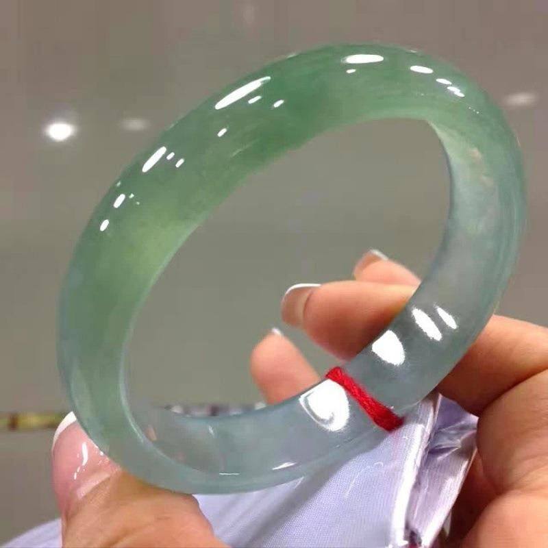 处理翡翠手镯正圈老坑冰种油青浅绿水润冰透玉镯子圆条少女款