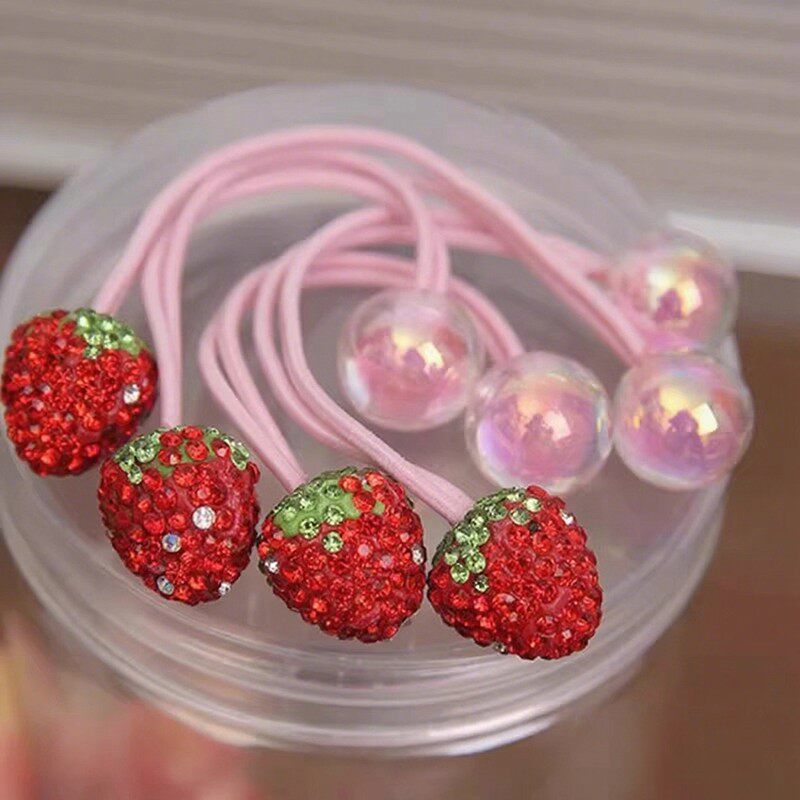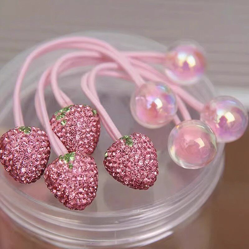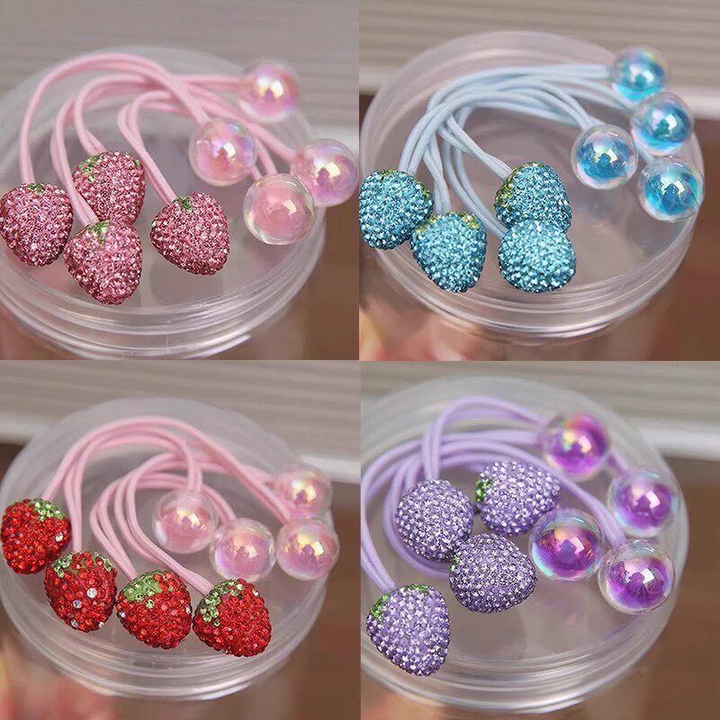 儿童草莓镶钻双头发绳皮筋女童扎辫子头绳发圈公主宝宝扎头发头饰
