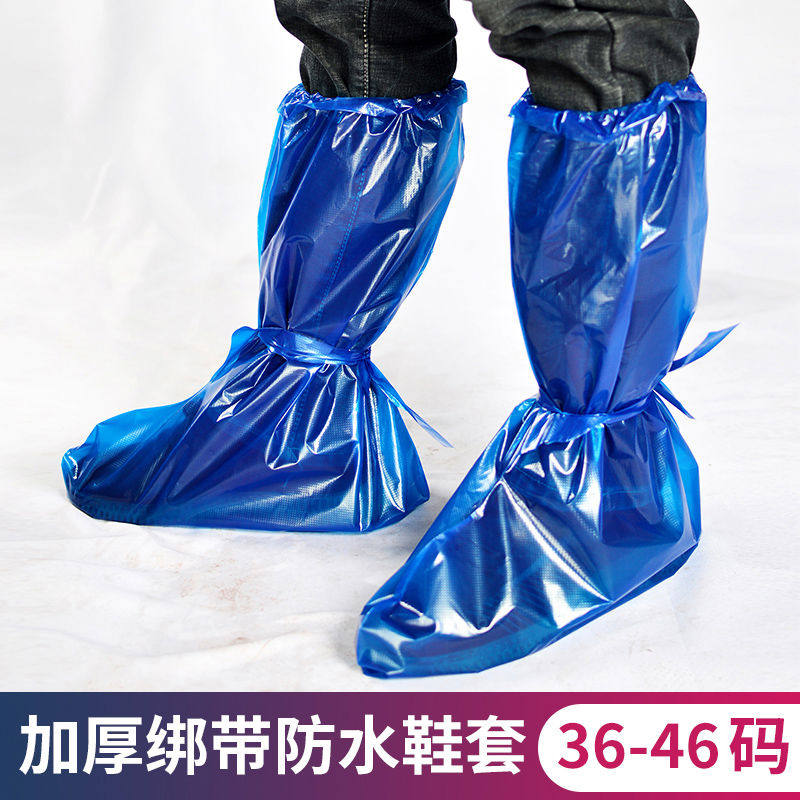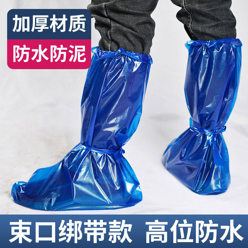 一次性雨鞋套鞋套绑带赶海高筒脚套防雨塑料养殖场用厚防沙尘