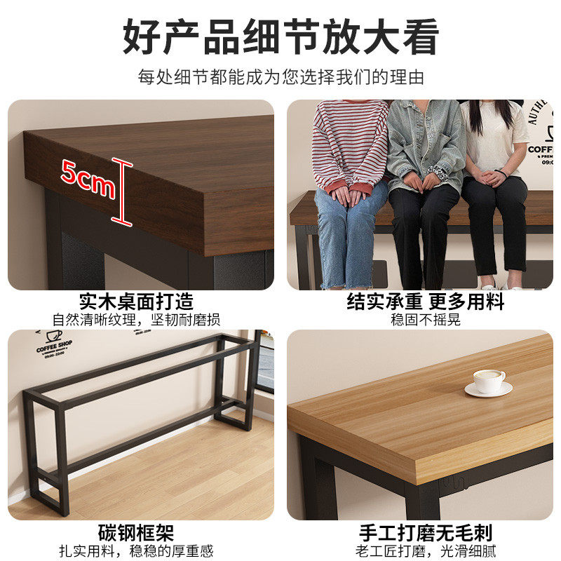 爆款实木吧台桌家用阳台休闲小户型奶茶店高脚靠墙长条桌椅酒吧窄