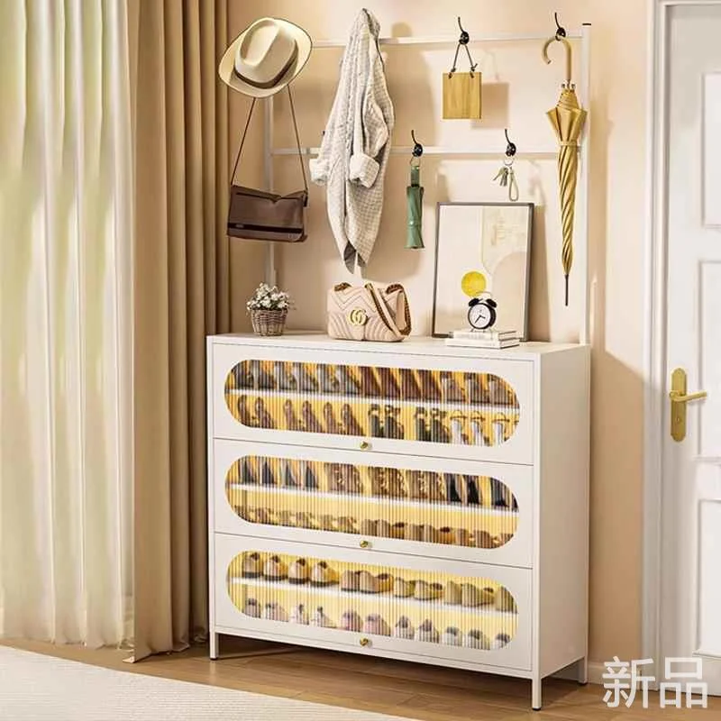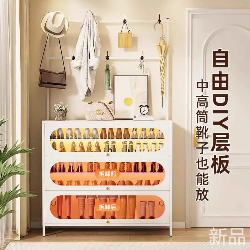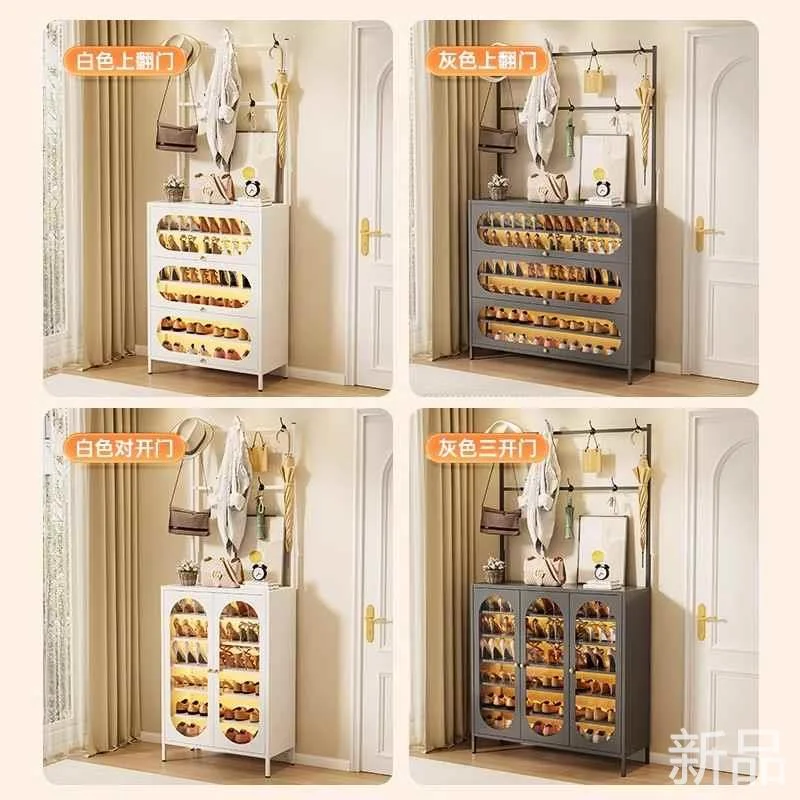 钢制鞋柜家用衣帽架一体靠墙多入户层玄关铁皮鞋架门口落地防新品