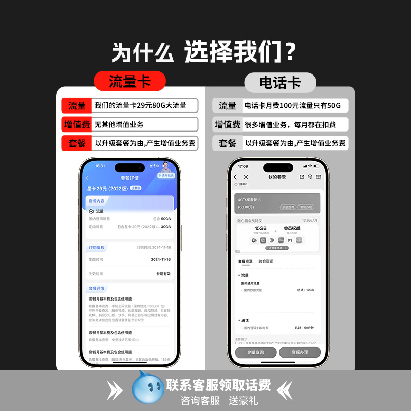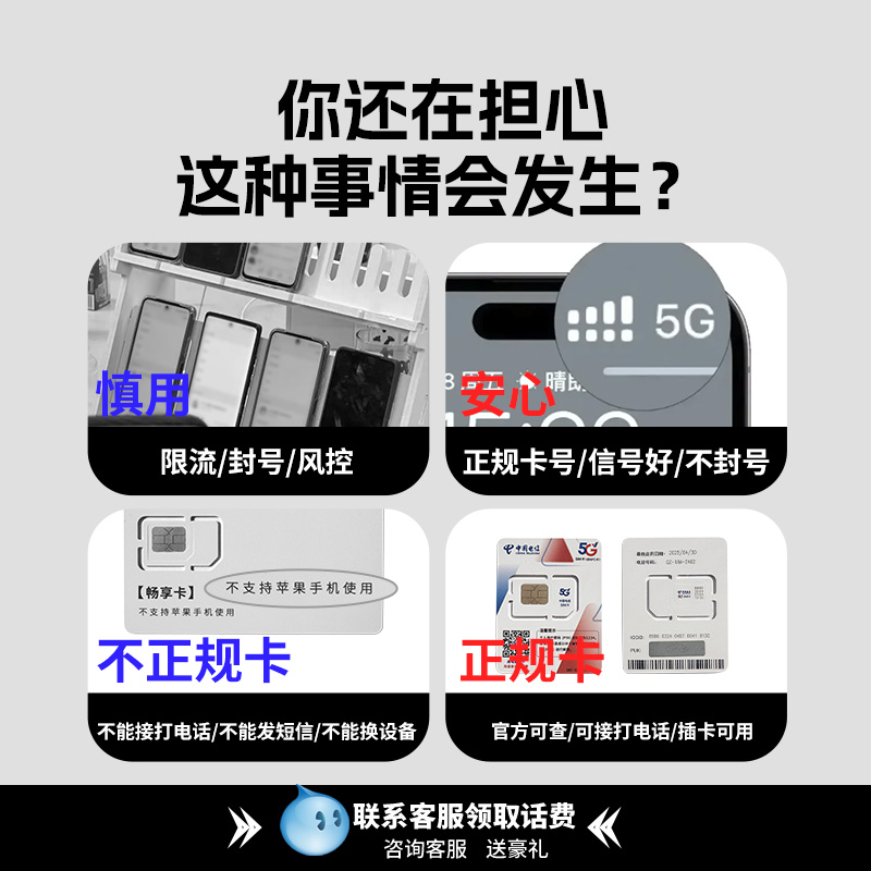 流量卡中国电信无线限量全国通用上网电话卡注册卡低月租永久套餐