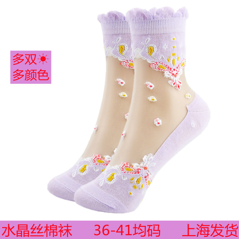 妈妈袜水晶丝中筒夏季透明玻璃丝薄款短袜长袜不勾丝天鹅绒棉底袜