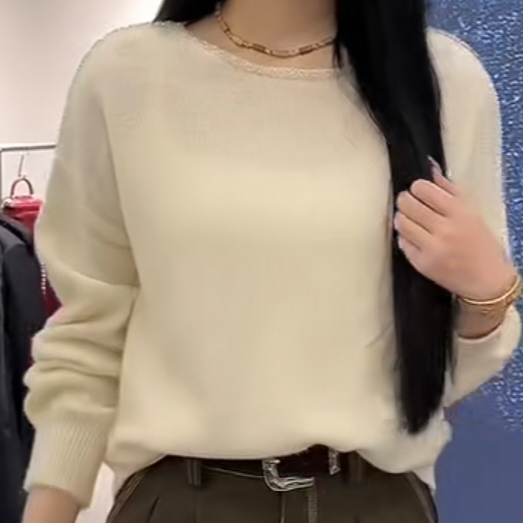 全羊毛毛衣针织衫女上装慵懒风上衣手工毛衣一字领宽松女减龄纯色