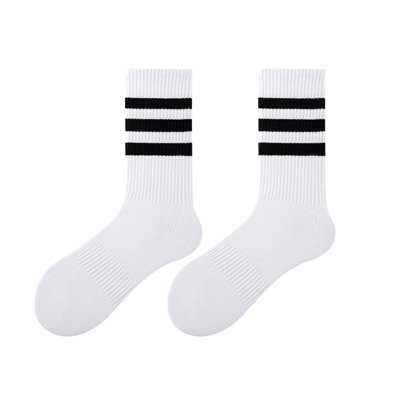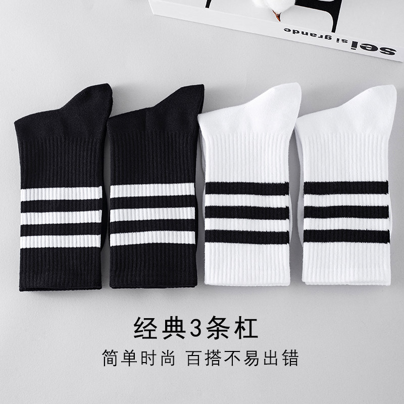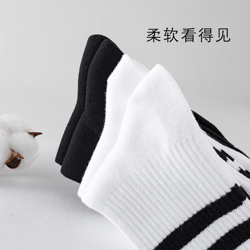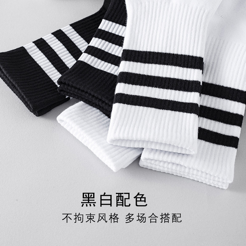 4双袜子男长筒袜高帮黑白条纹防臭吸汗运动篮球秋冬纯棉学生长袜