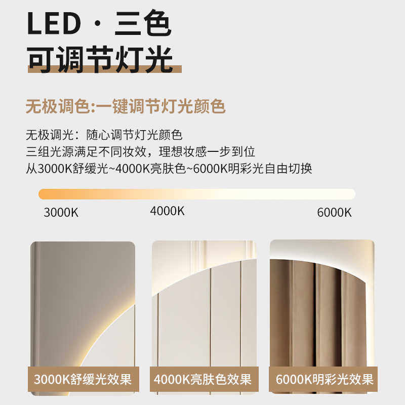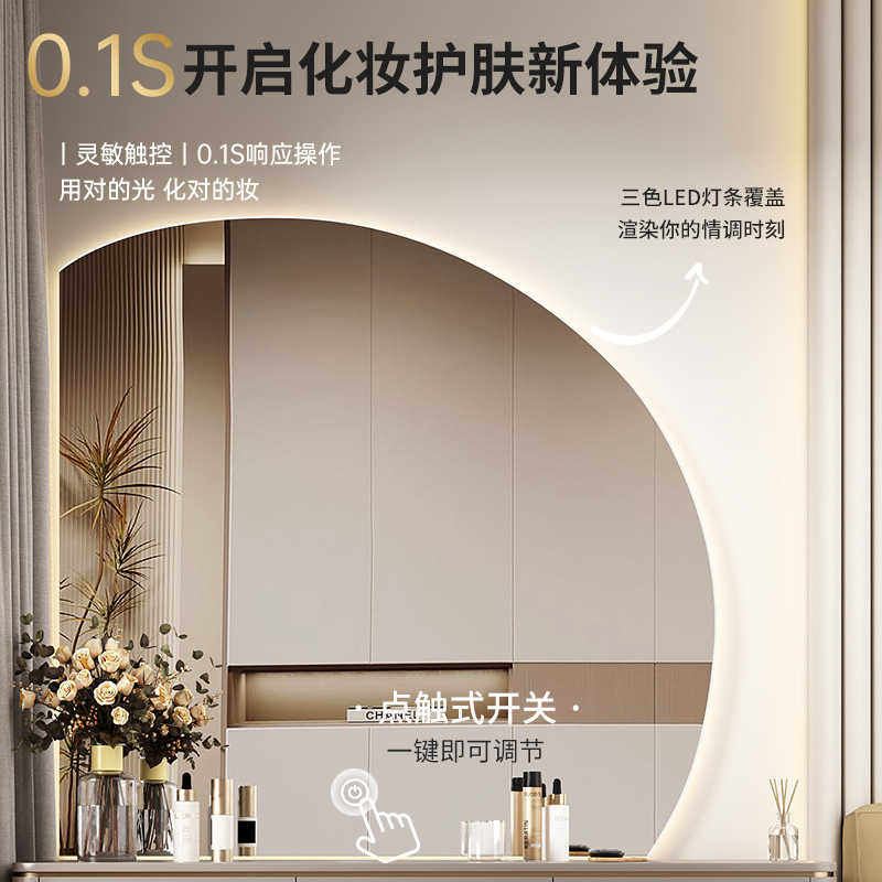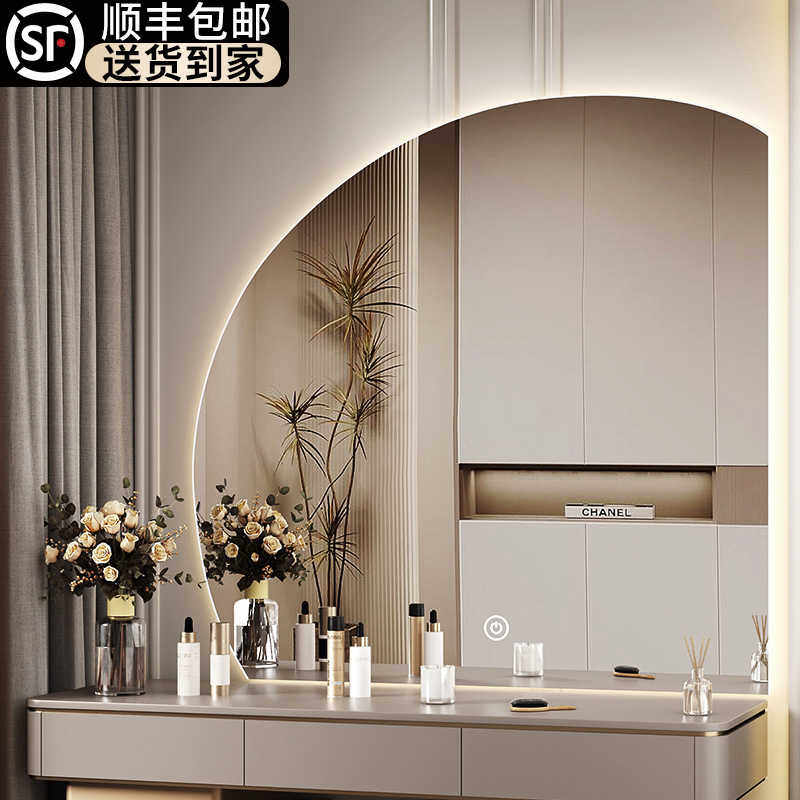 智能半圆化妆镜壁挂带灯异形镜子家用主卧梳妆镜轻奢LED化妆镜子
