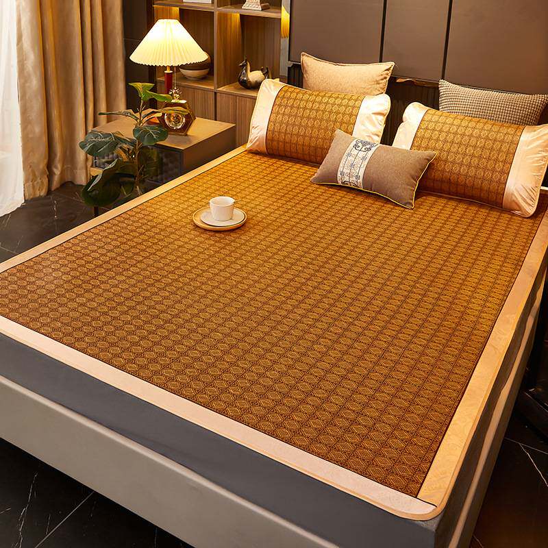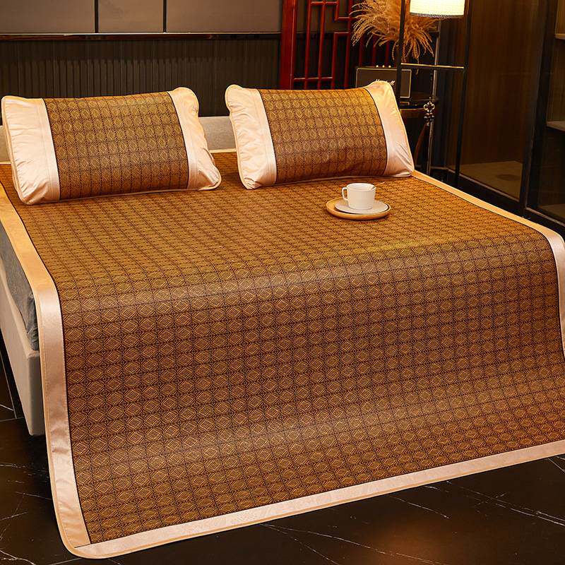 厂家直销凉席藤席三件套双人床可折叠学生宿舍艾草冰丝席 代发