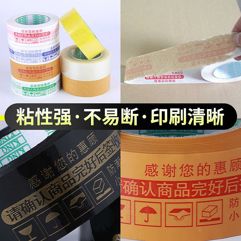 淘宝警示语胶带快递打包封口胶布大卷胶带封箱带包装黄色透明胶纸