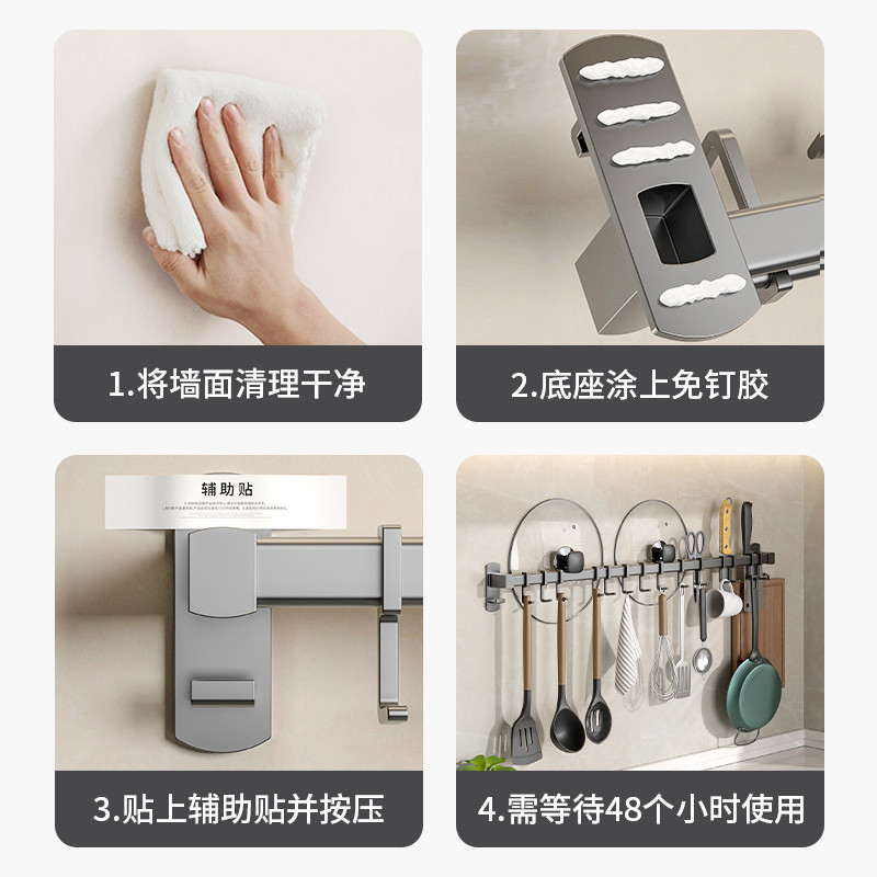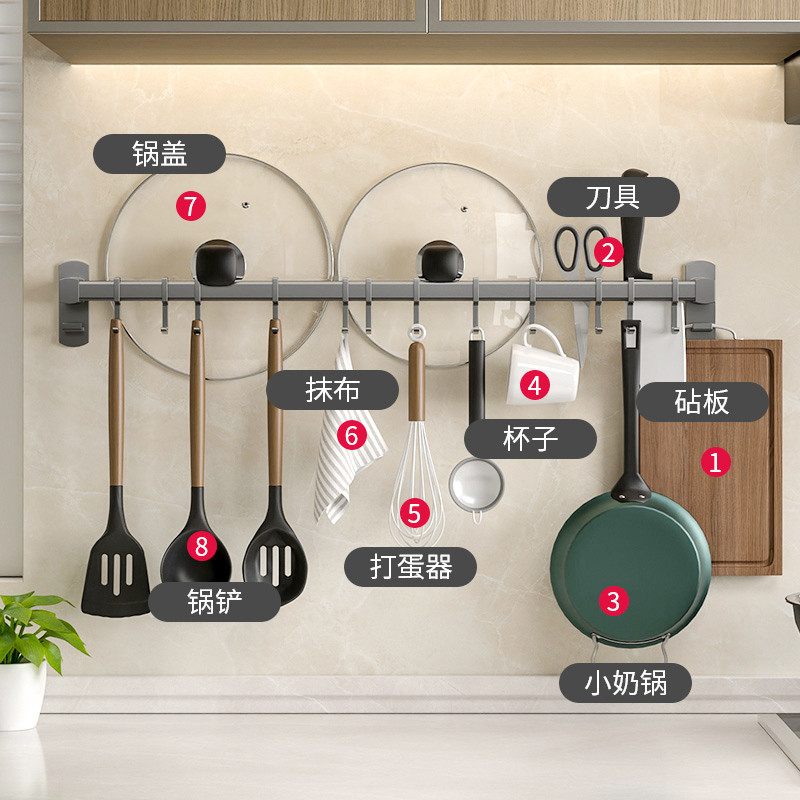 厨房挂钩挂杆挂架双杆筷筒免打孔勺子铲子转角各种神器挂架可插刀