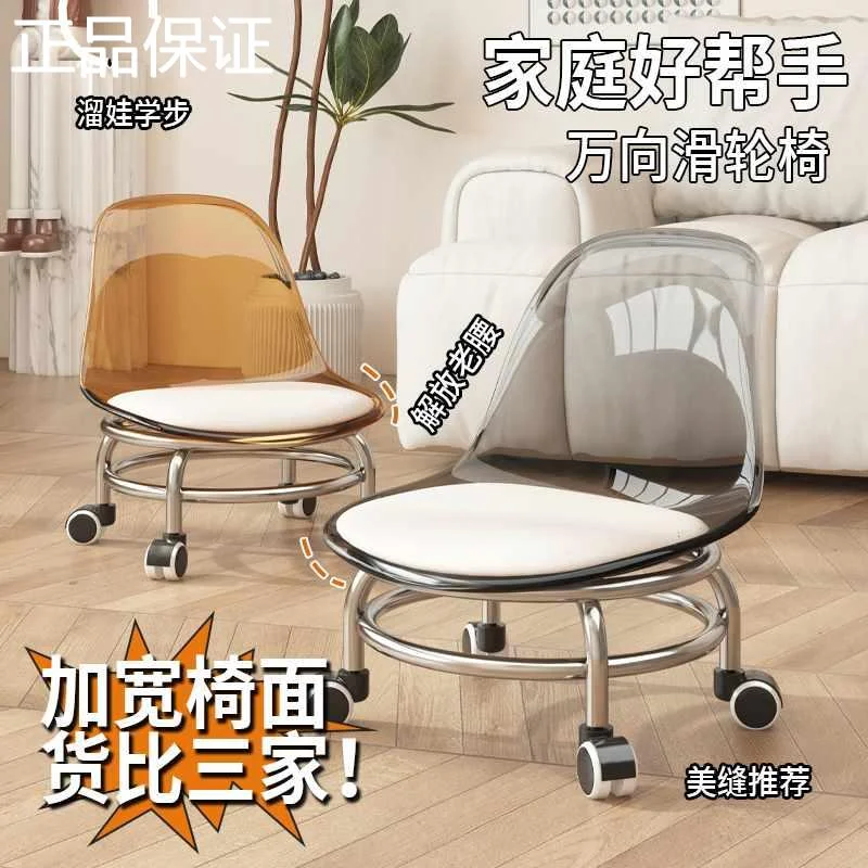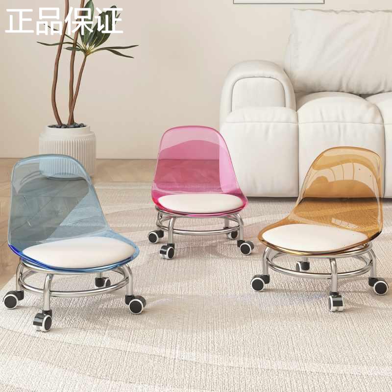 亚克力万向轮小凳子软座滑轮靠静音儿童矮凳背椅子家用沙发新品