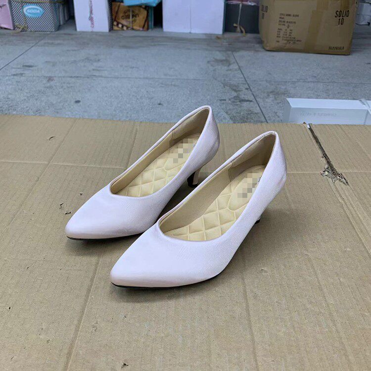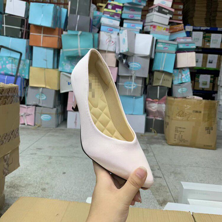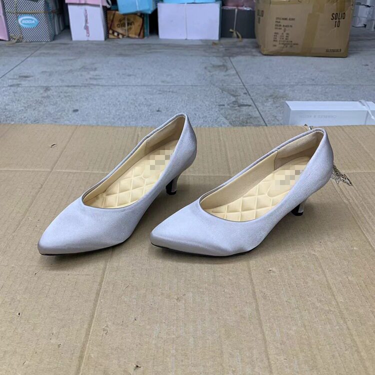外贸原单新款时尚百搭气质通勤缎面细跟尖头浅口单鞋女鞋
