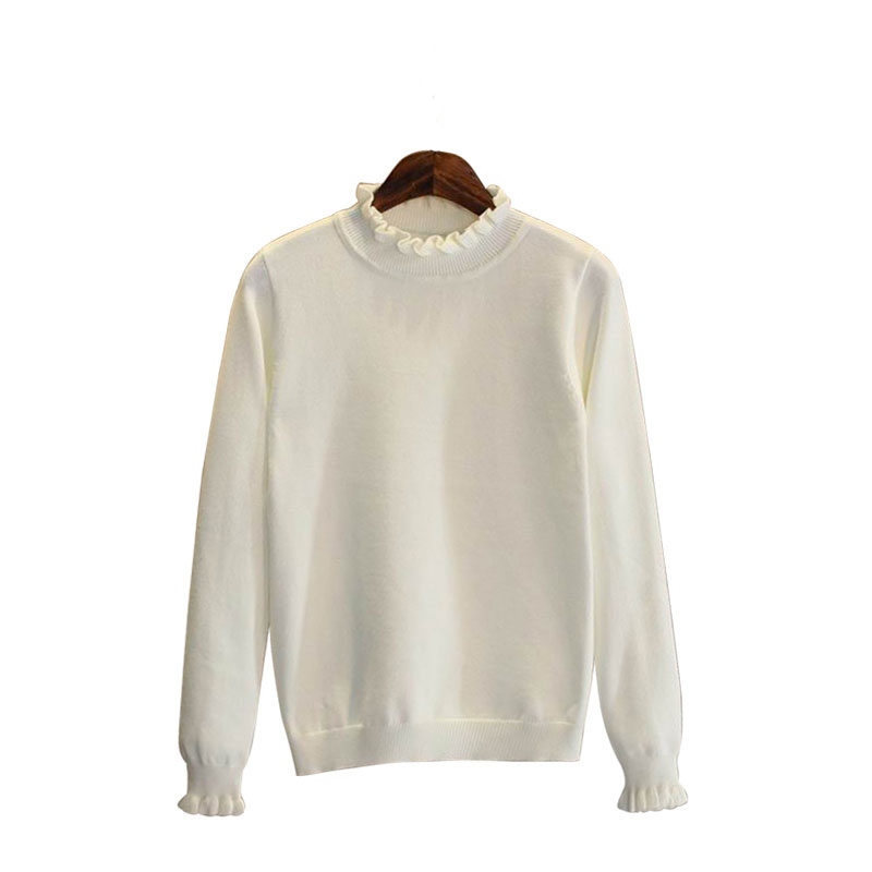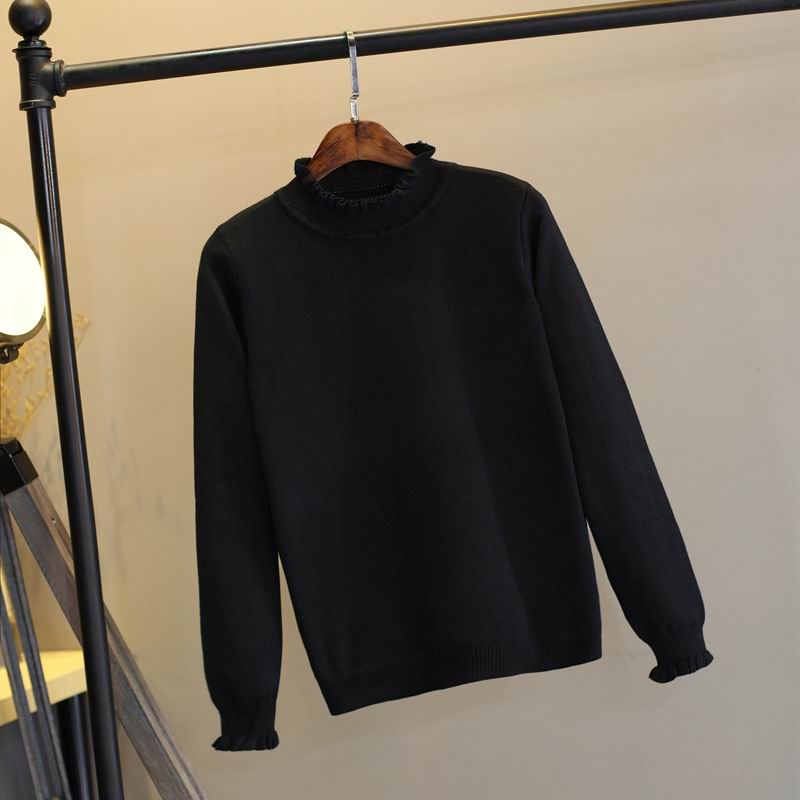 秋冬新款木耳边打底衫高领套头长袖修身木耳领针织保暖加绒毛衣女