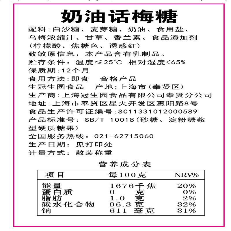 冠生园奶油话梅糖果上海特产80后老式怀旧食品零食硬糖散装铁礼盒