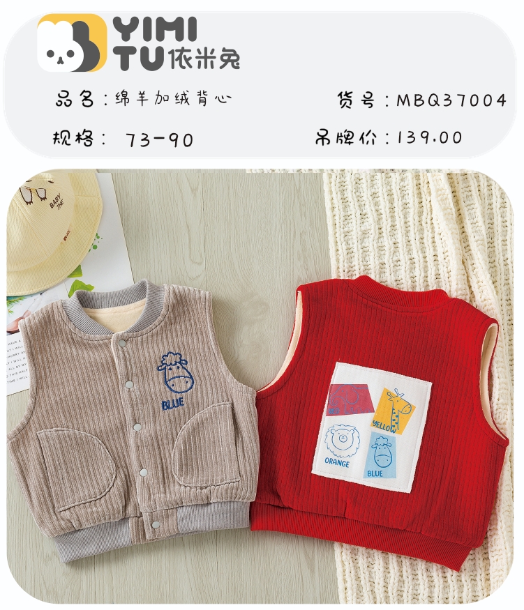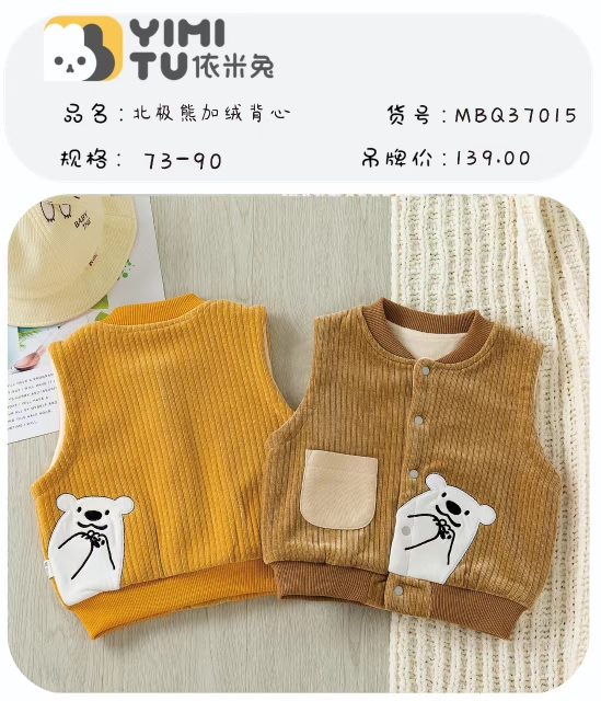 依米兔秋冬季婴幼儿外套马甲加绒加厚棉服长袖长裤连帽子背心