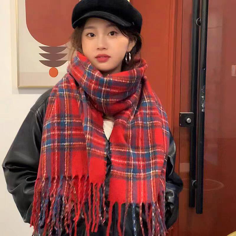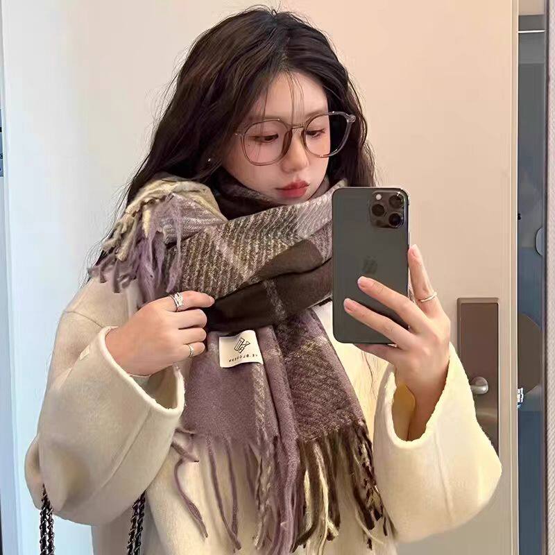 长款保暖韩版街头风英伦围巾时尚保暖护颈格子百搭披肩女格纹女