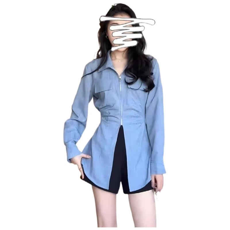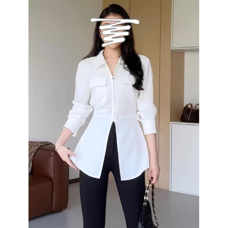 2024早秋新款大码女装胖妹妹衬衫收腰侧边褶皱时尚超百搭显瘦上衣