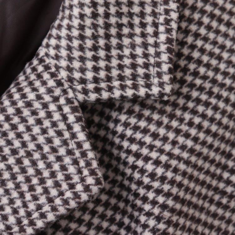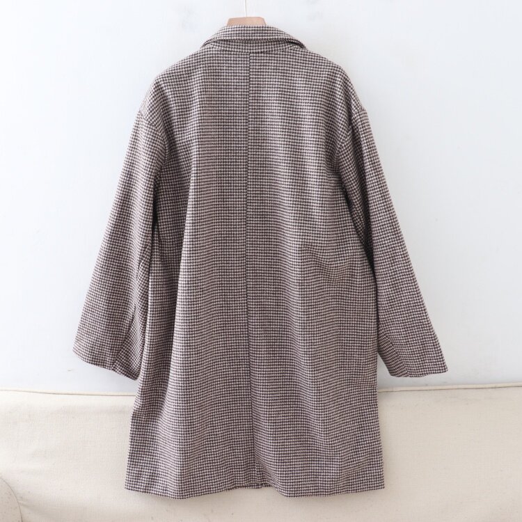 A05093日单新款客供两粒扣西装领宽松显瘦女中长款千鸟格呢子外套