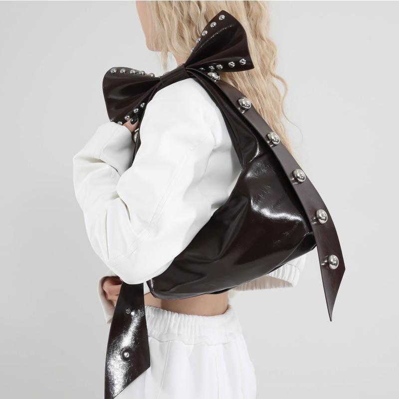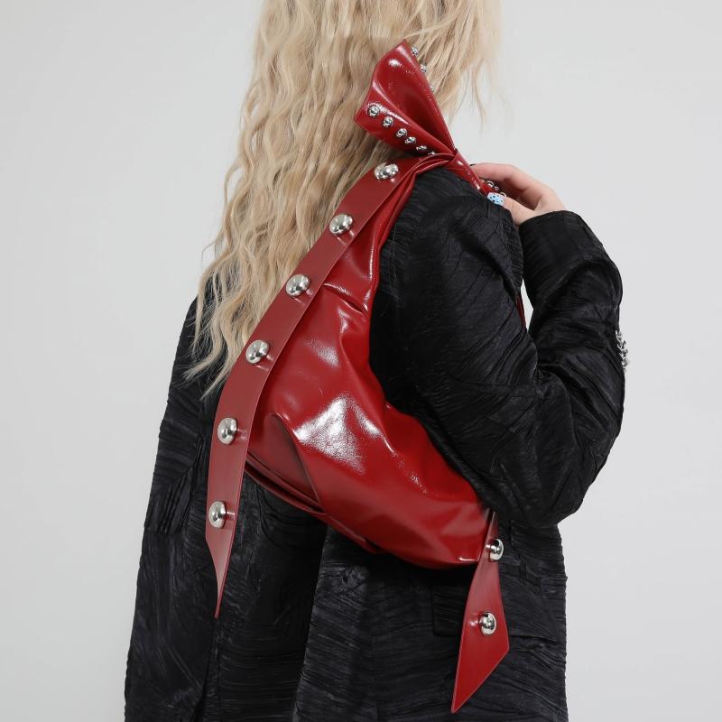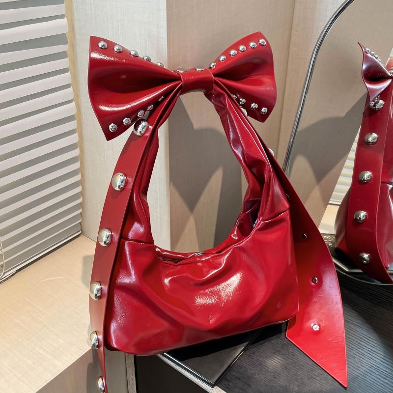 爆款!2025新款包包小众设计个性创意铆钉辣妹风红色腋下包蜡油皮