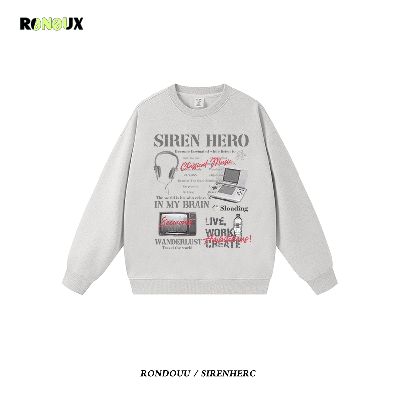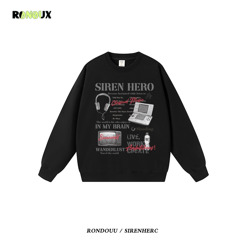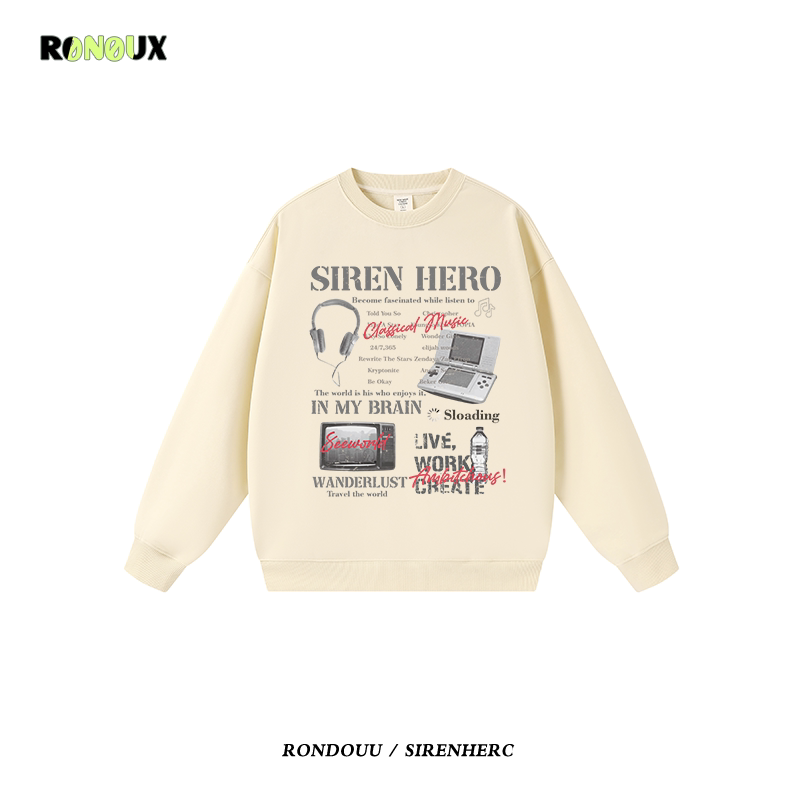 美式街头嘻哈潮牌oversize重磅圆领卫衣男女秋冬宽松情侣无帽外套