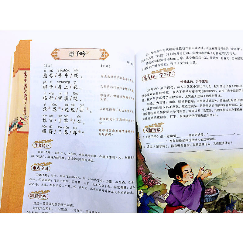 新版大开本小学生必背古诗词75+80首人教版备彩图注音考题链接古诗词大全集古诗书一二三四年级唐诗宋词课外必读